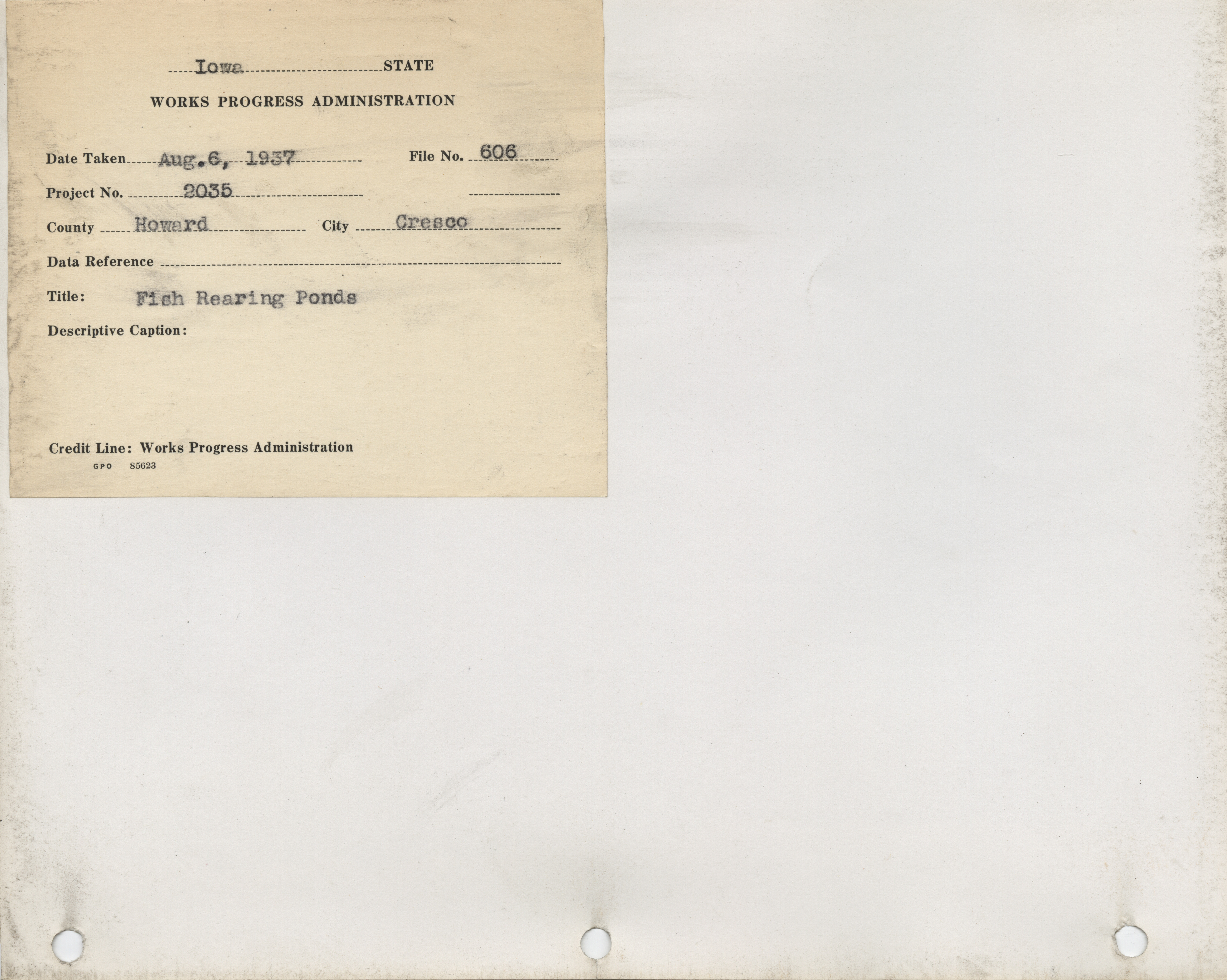 - Conservation. Howard County. Cresco. Fish Rearing Ponds. Project 2035. (2 b/w photographs), 1936-1937