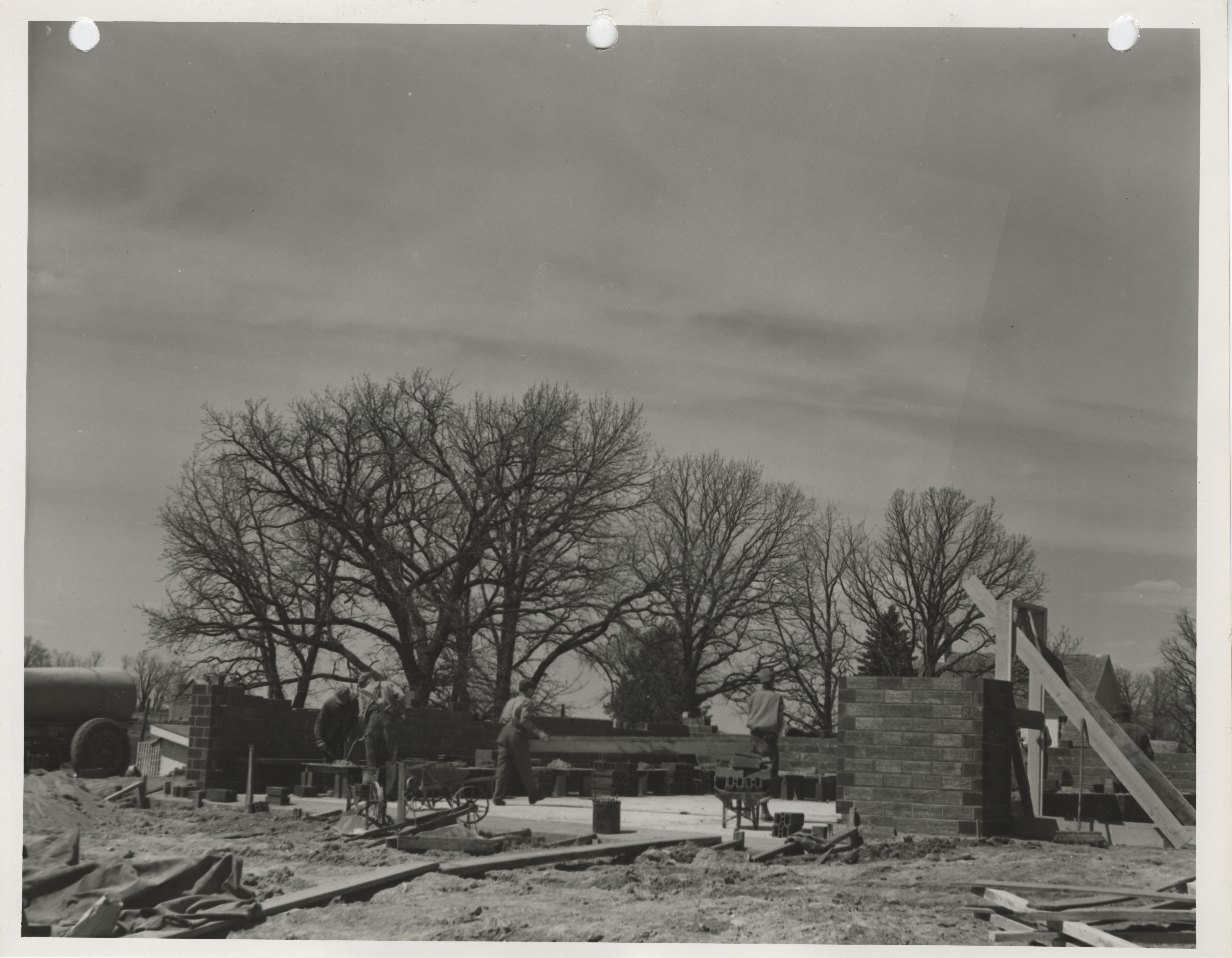 Photograph of the construction of a maintenance shed in Mackey Item Info