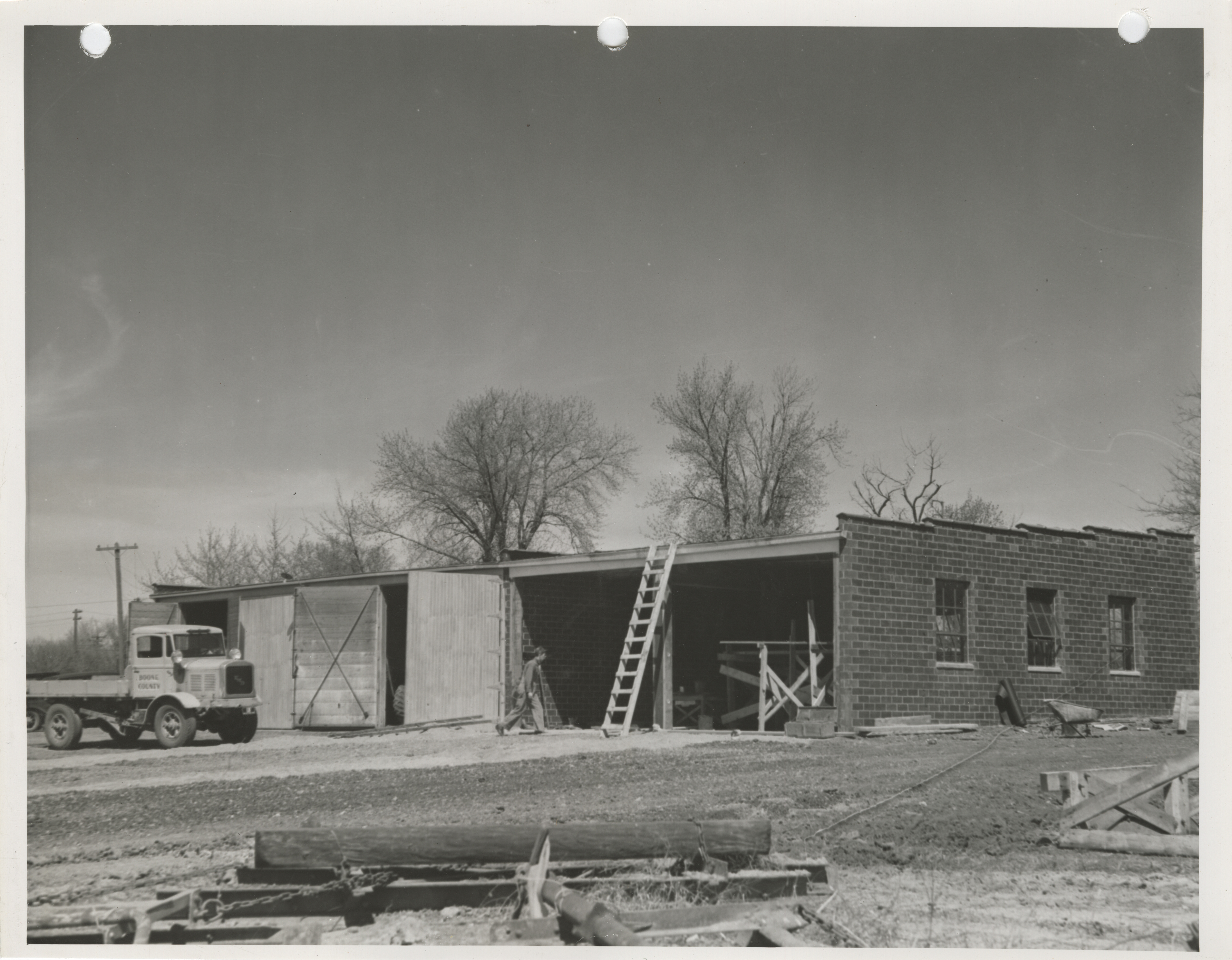 Photograph of the construction of a maintenance shed addition in Madrid Item Info