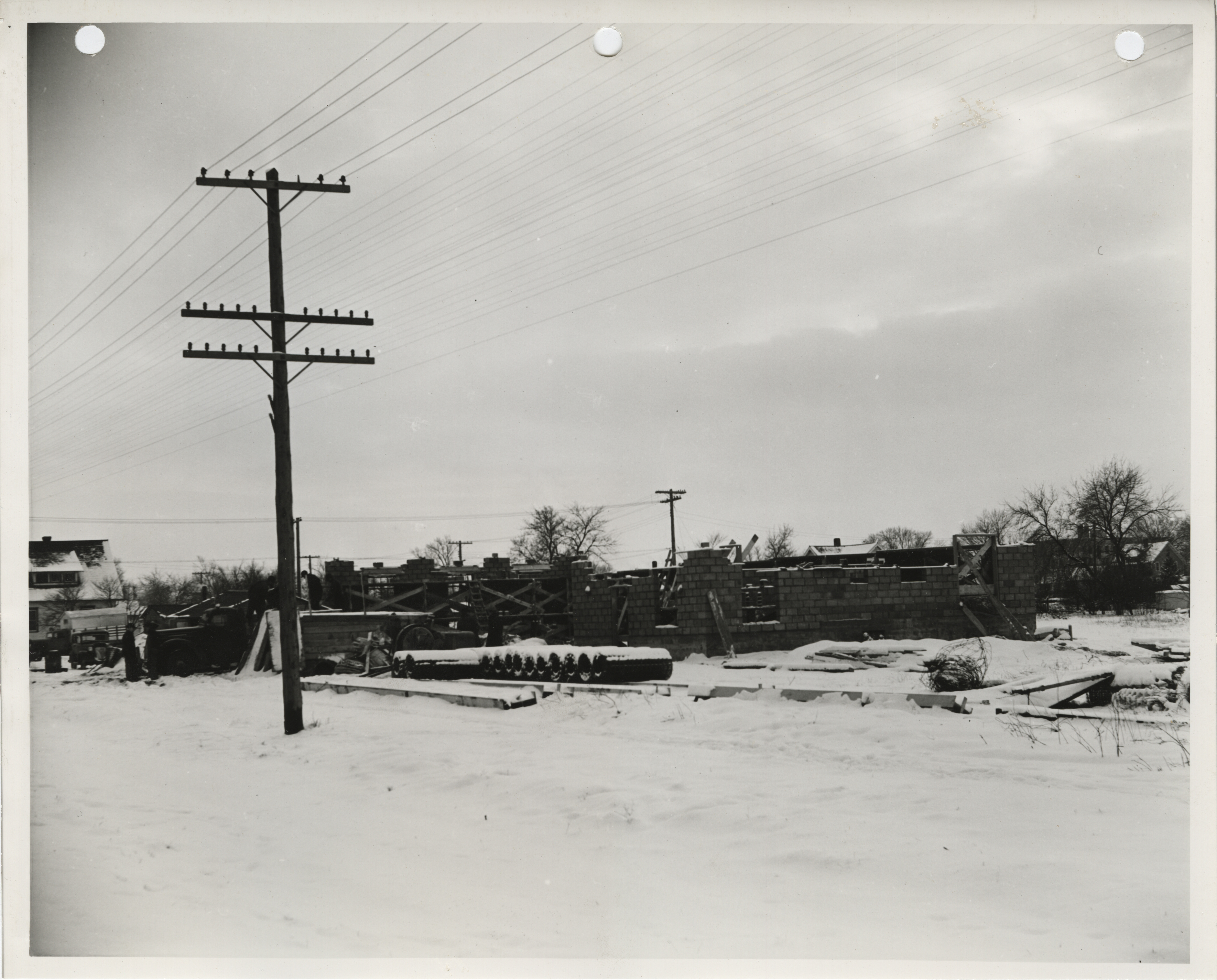 Photograph of the construction of a maintenance shed in Dakota City Item Info