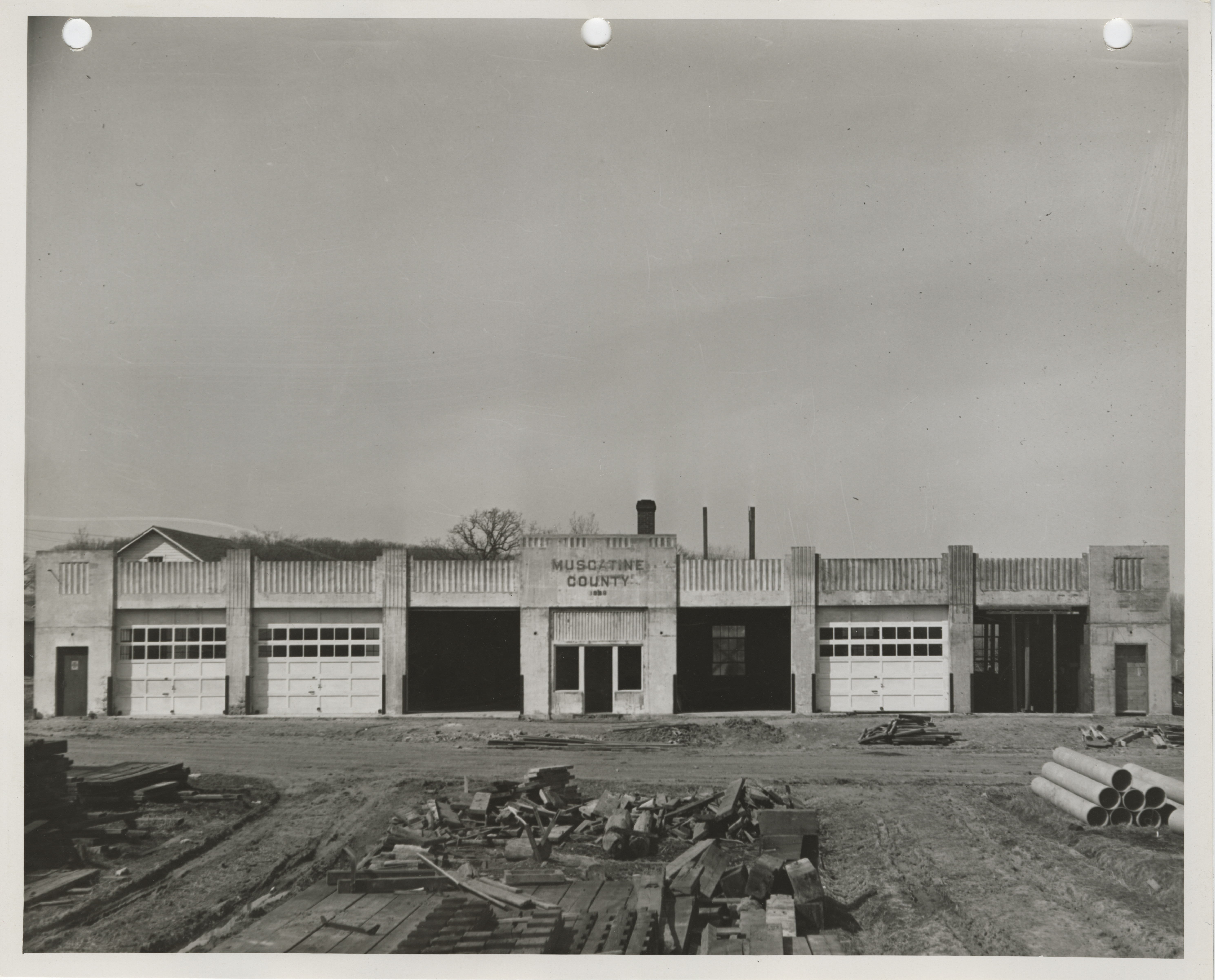 - "Photograph of the county maintenance garage in Muscatine", Work Projects Administration (Iowa) Photographs, Iowa State University Library Digital Collections