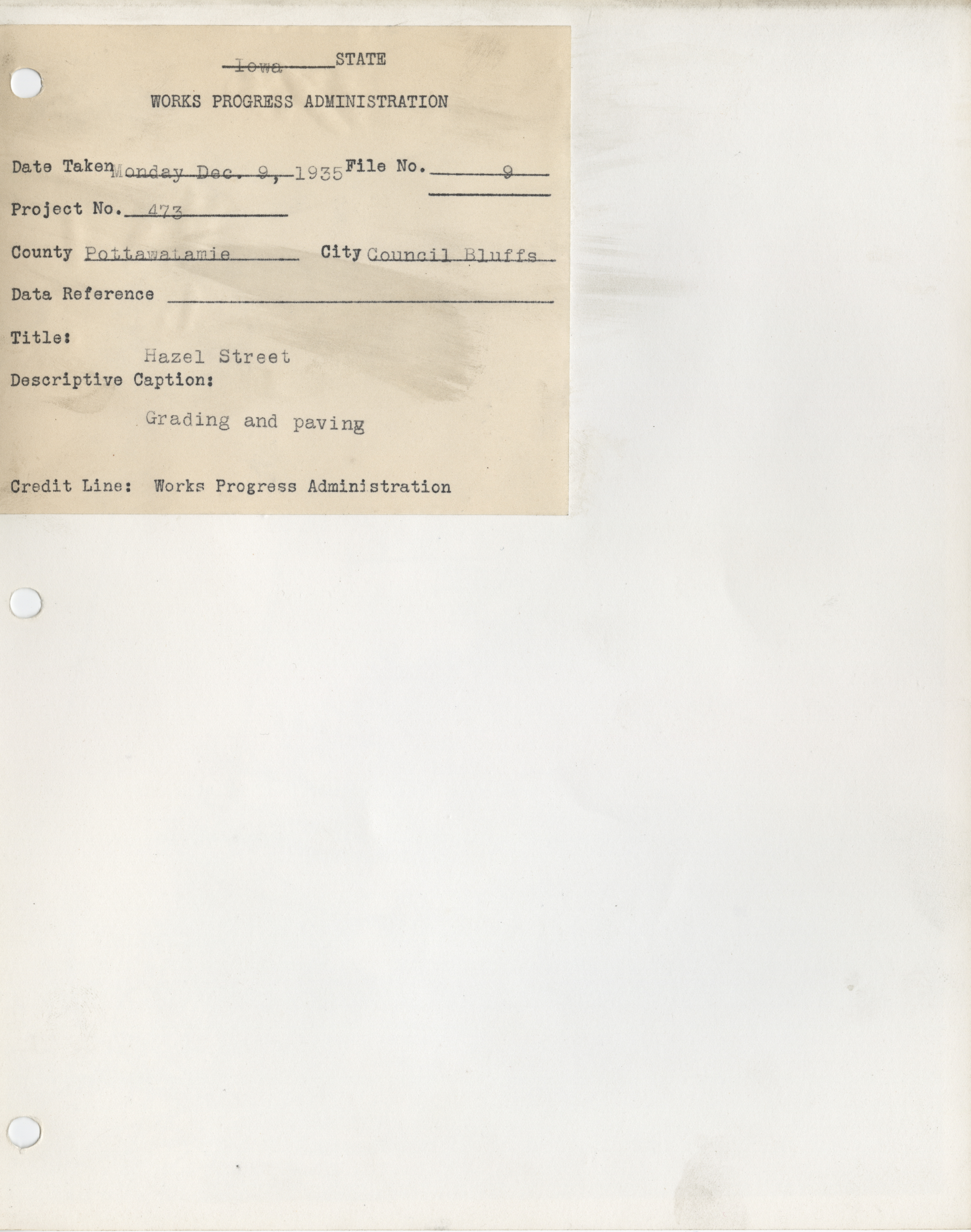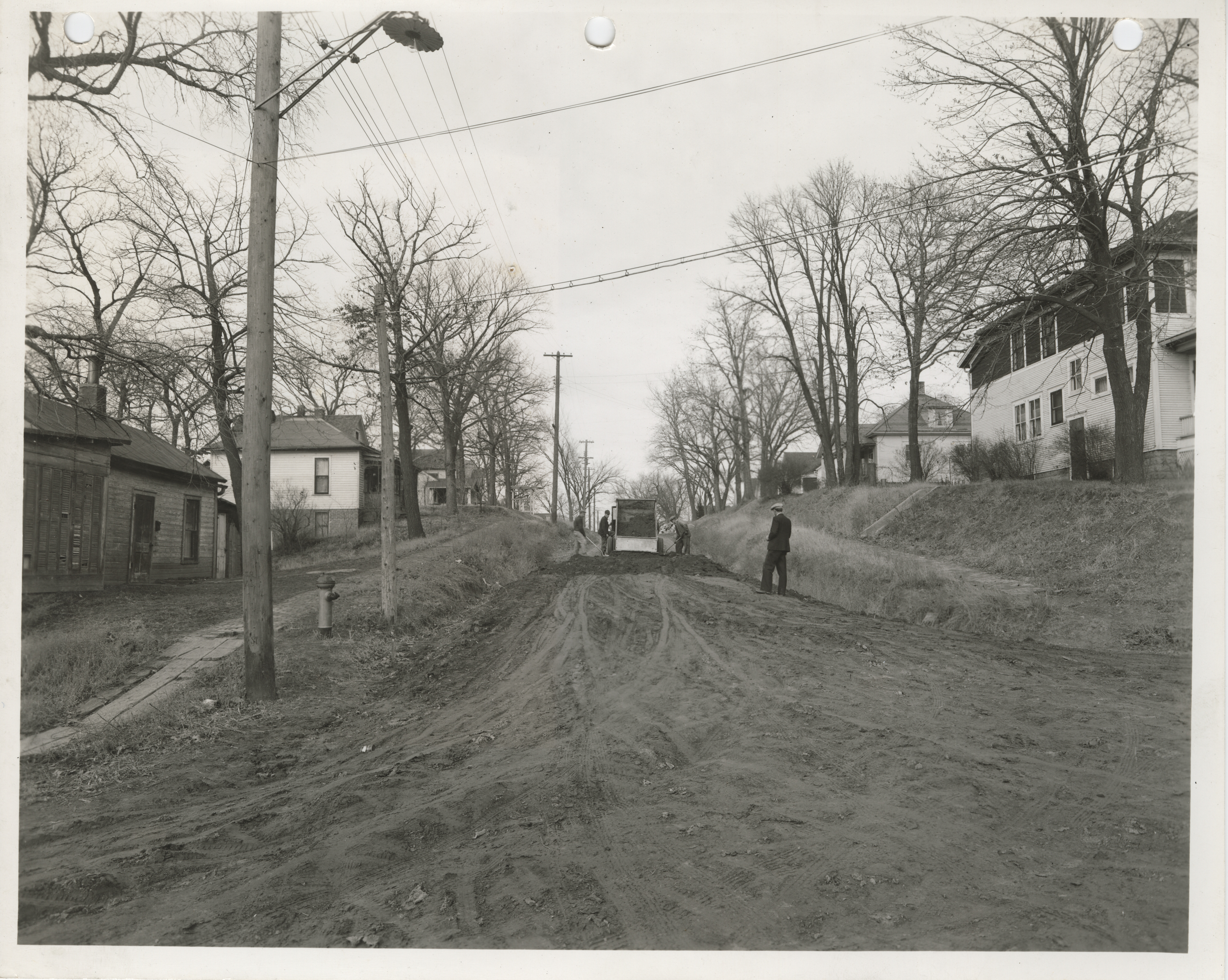 - "Photograph of people grading and paving Hazel Street in Council Bluffs", Work Projects Administration (Iowa) Photographs, Iowa State University Library Digital Collections