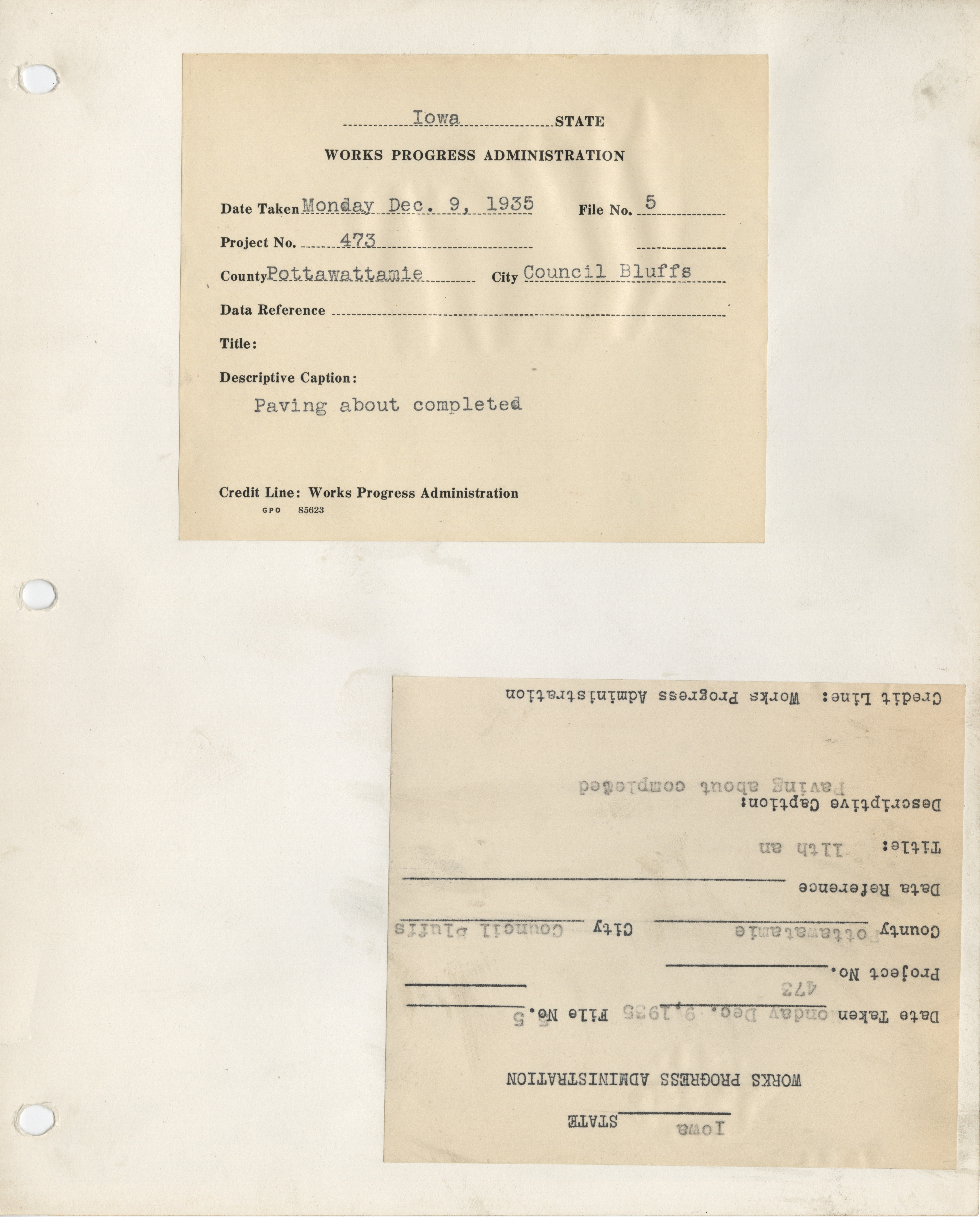- District 5. Pottawattamie County. Council Bluffs. Grading and Paving. Project 473. (4 b/w photographs), 1935