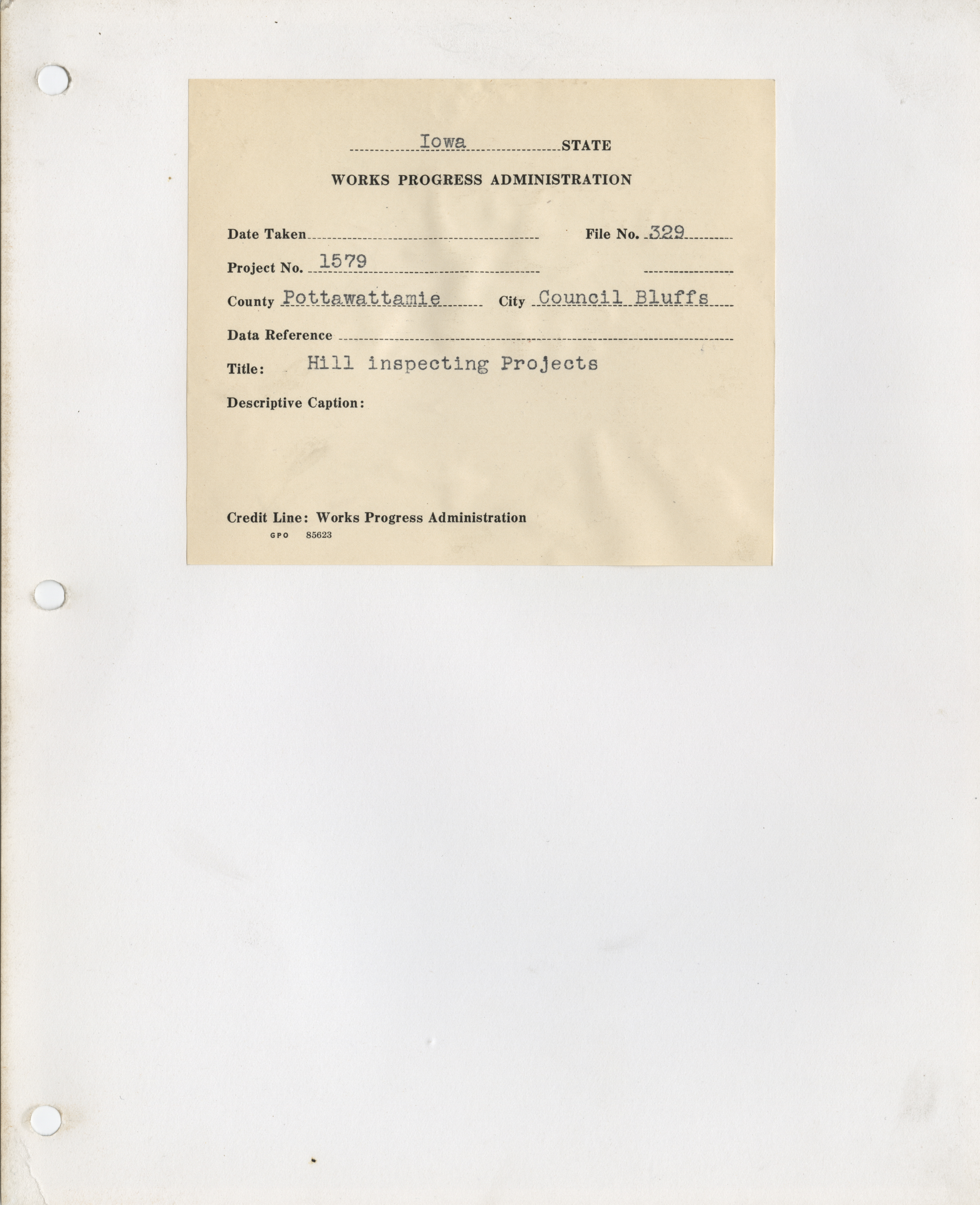 - District 5. Pottawattamie County. Council Bluffs. Hill Inspecting Projects. Project 1759. (4 b/w photographs), undated