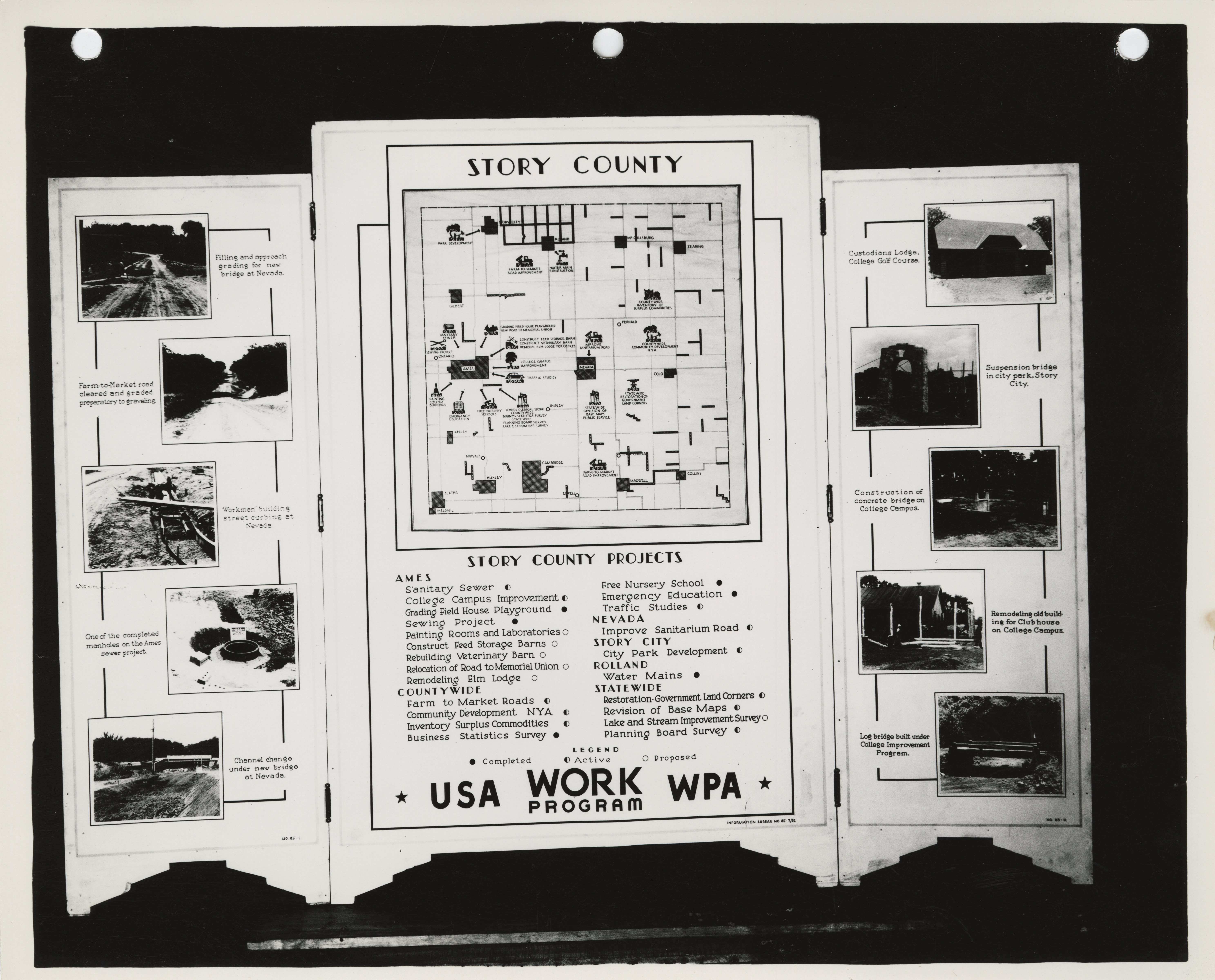 - "Photograph of the exhibit panel of WPA projects in Story County", Work Projects Administration (Iowa) Photographs, Iowa State University Library Digital Collections