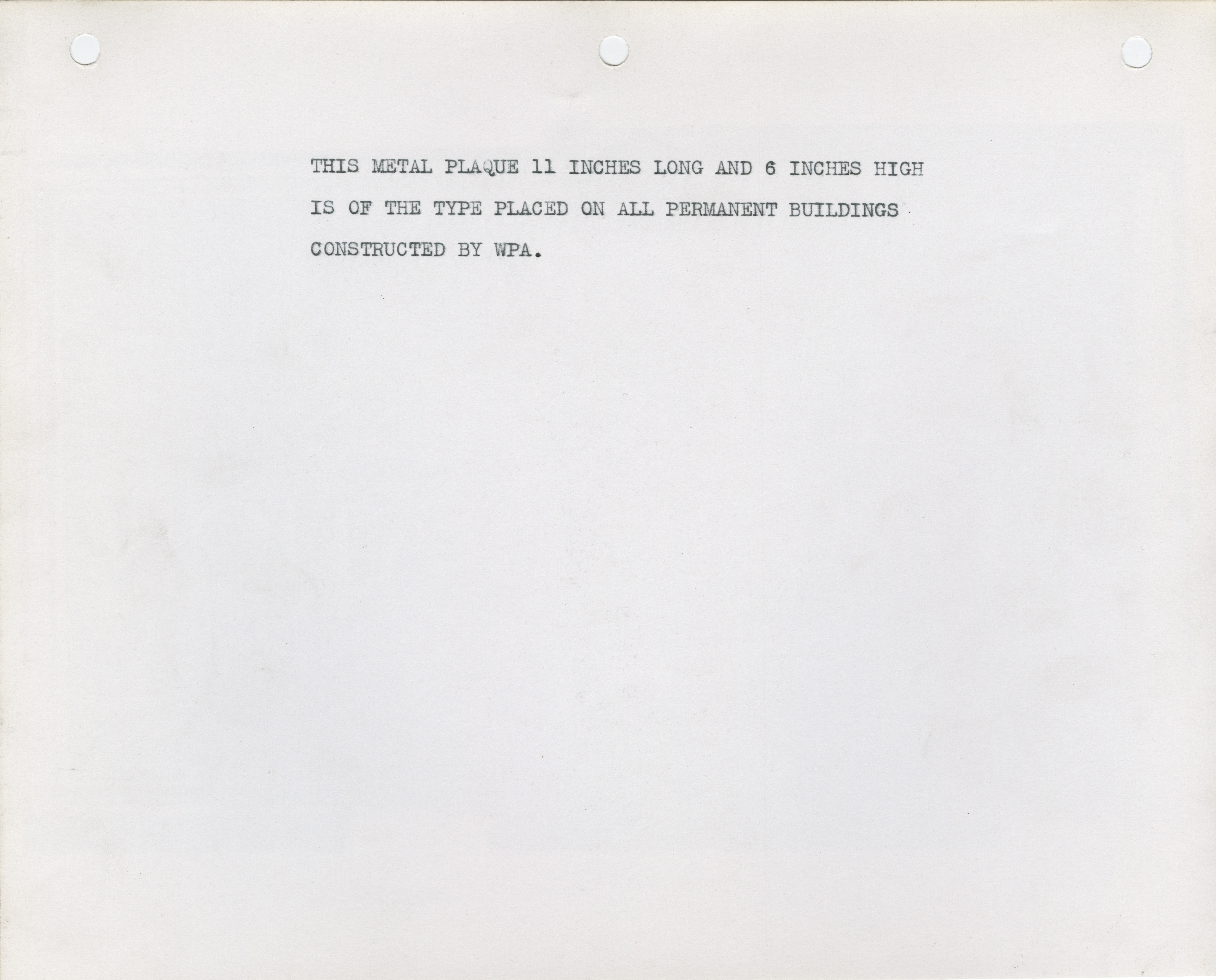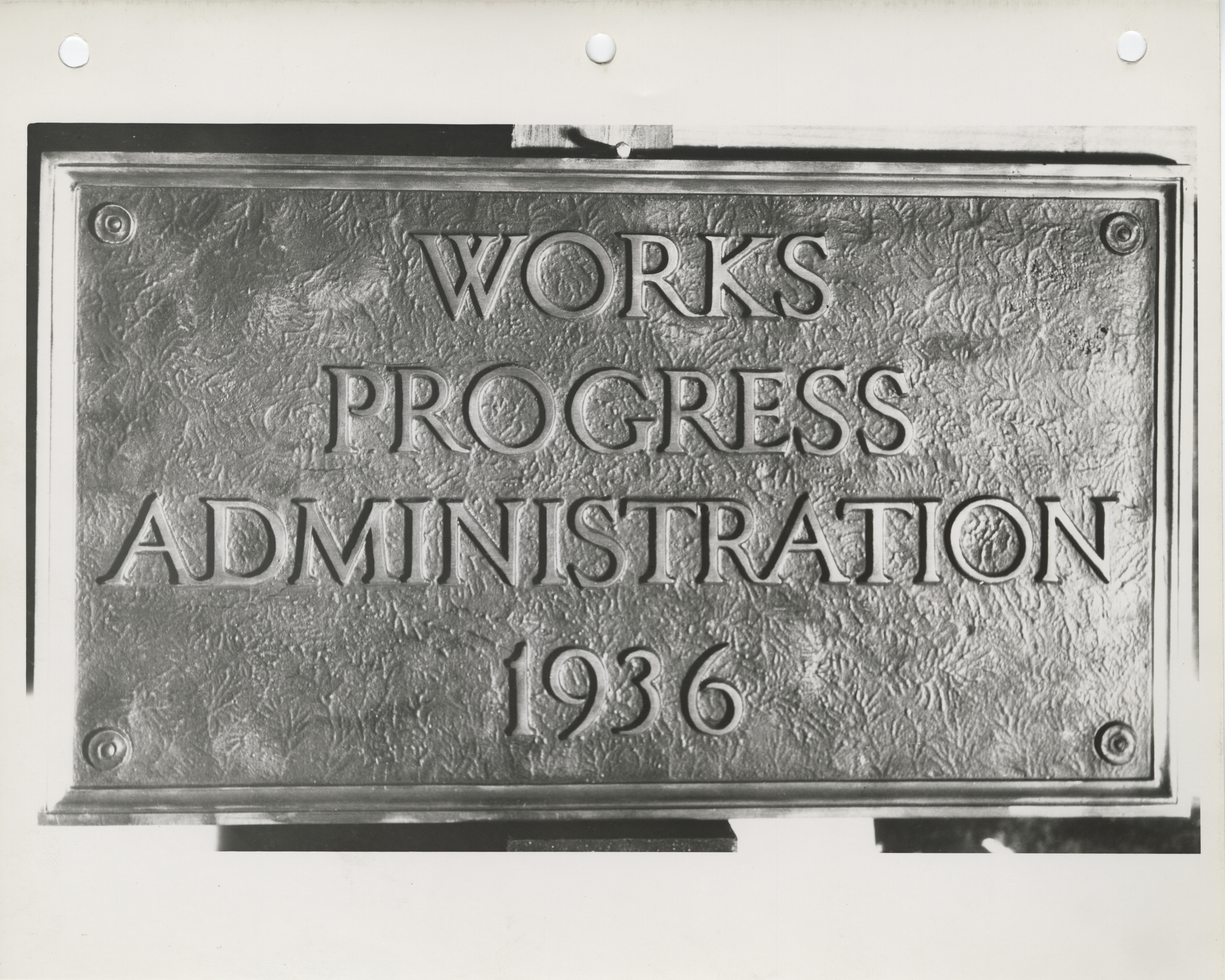 - "Photograph of the WPA metal plaque", Work Projects Administration (Iowa) Photographs, Iowa State University Library Digital Collections