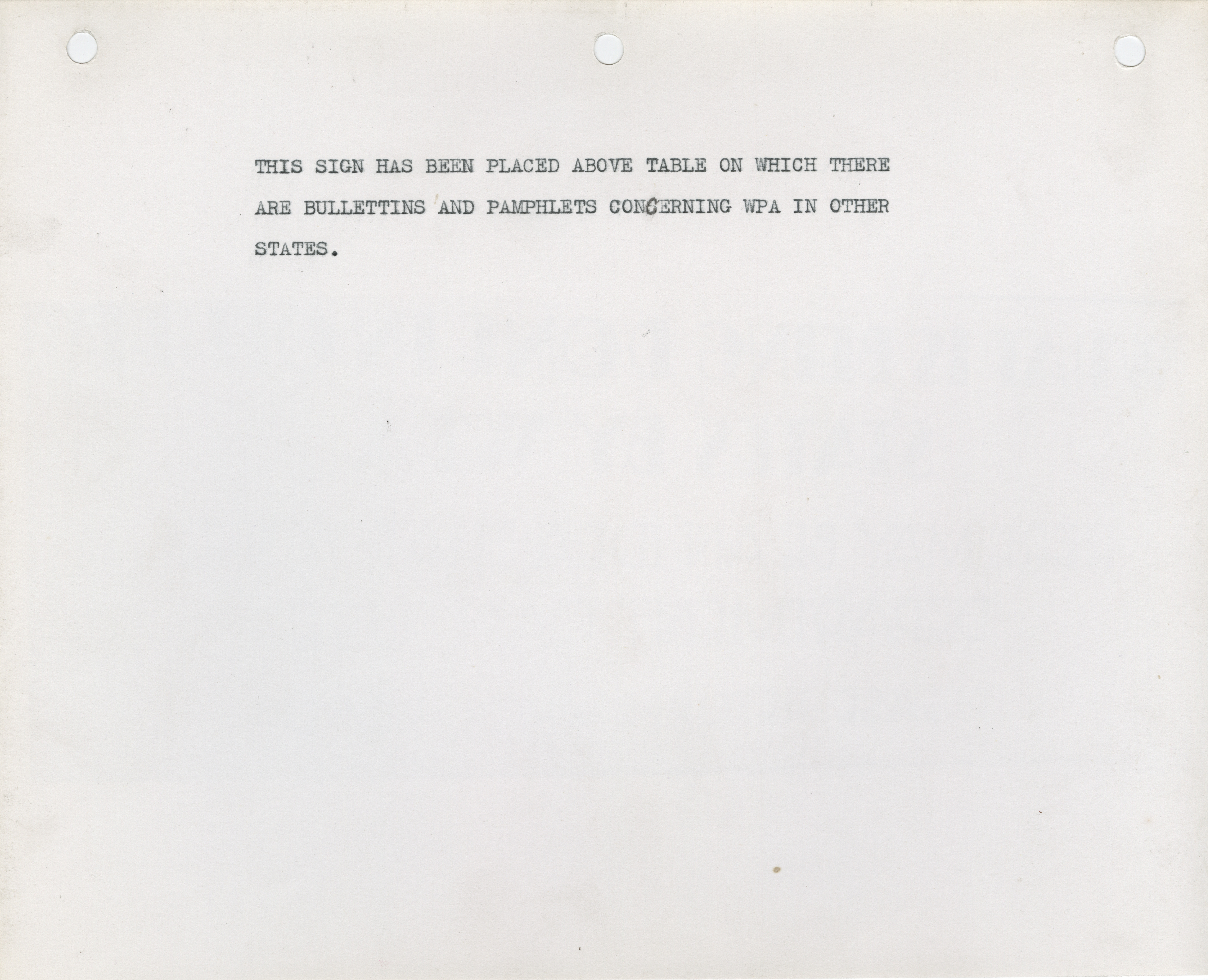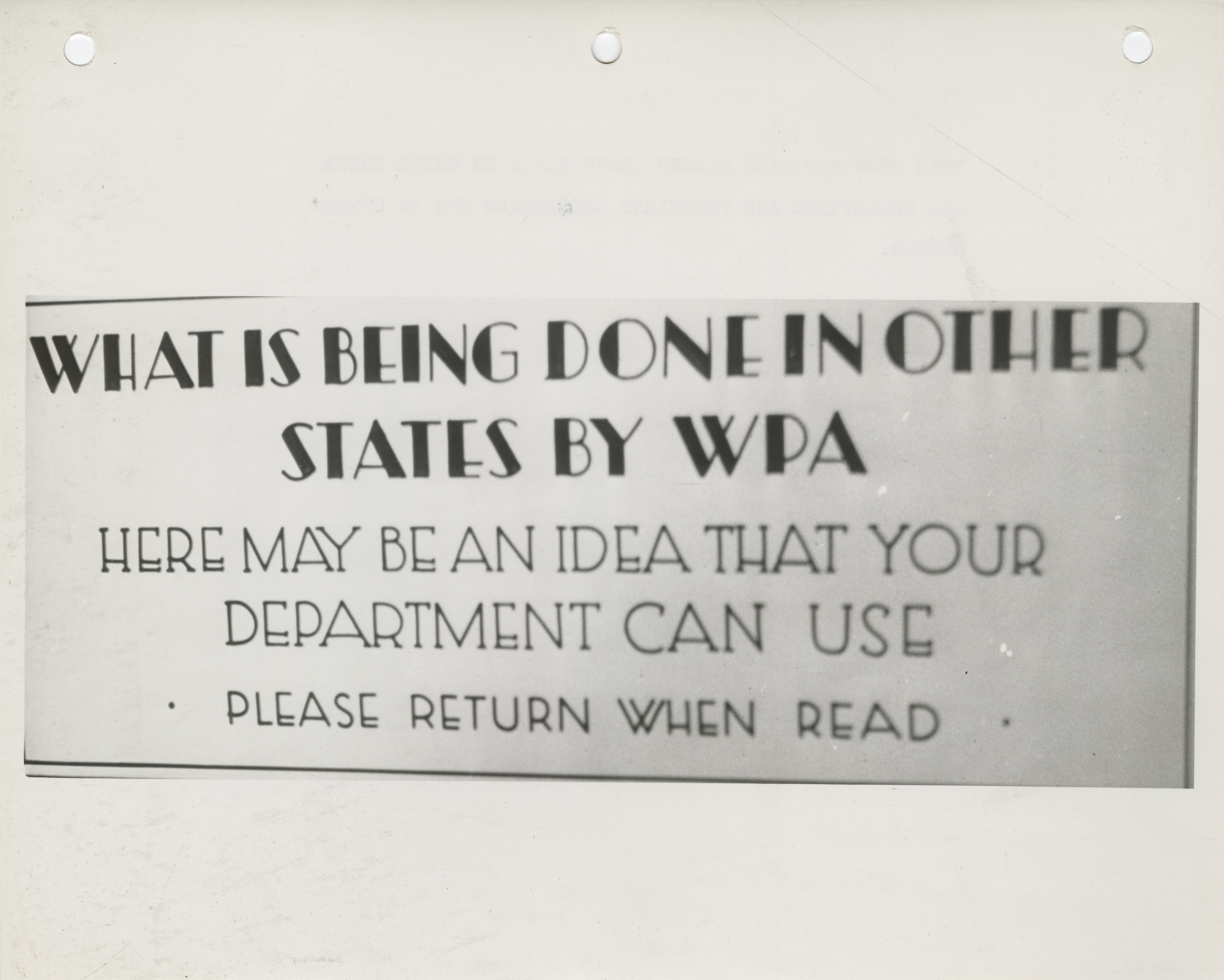 - "Photograph of the label concerning WPA in other states", Work Projects Administration (Iowa) Photographs, Iowa State University Library Digital Collections