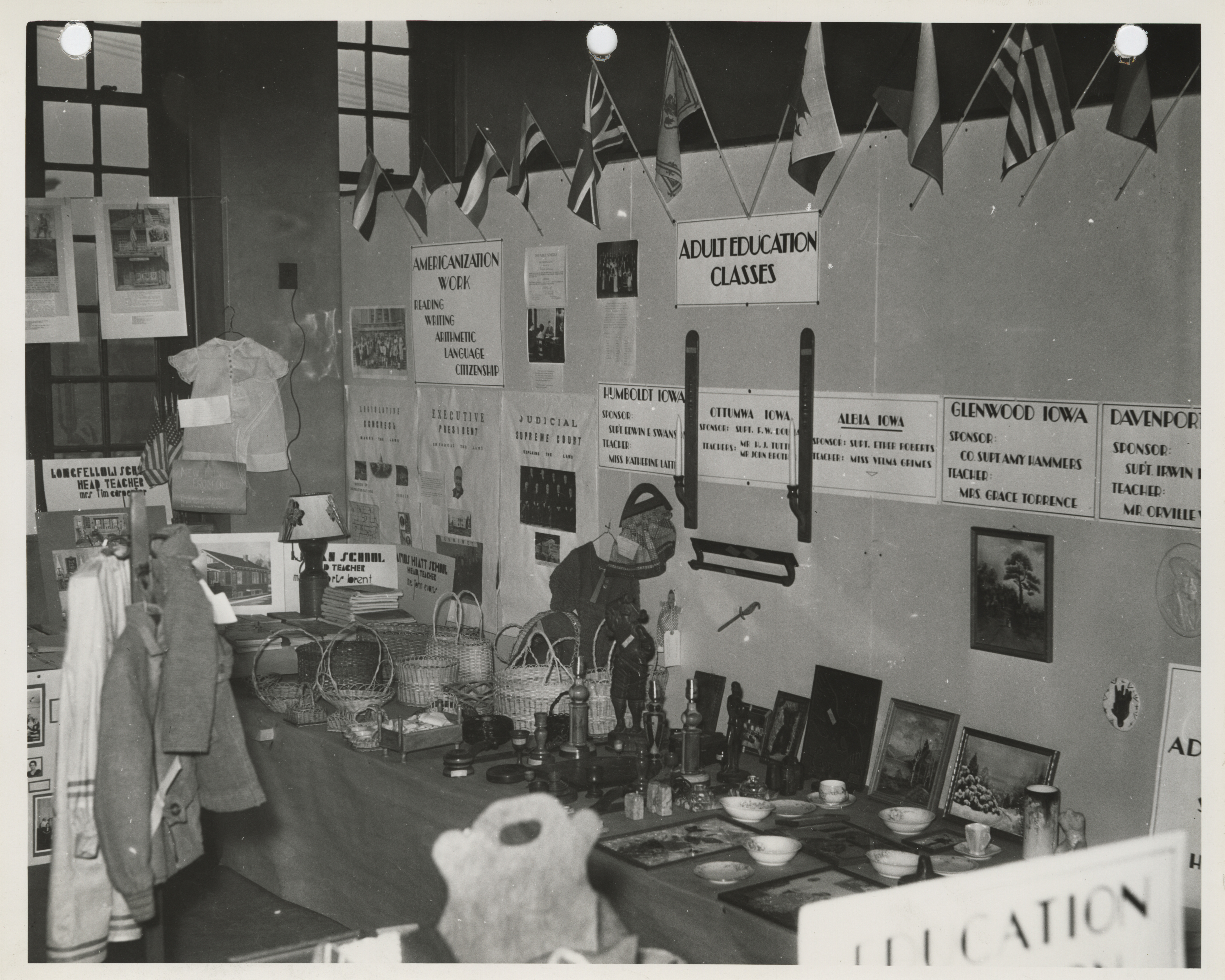 - "Photograph of the exhibit of WPA nursery schools and adult education classes at the annual convention of the Iowa State Teachers' Association", Work Projects Administration (Iowa) Photographs, Iowa State University Library Digital Collections
