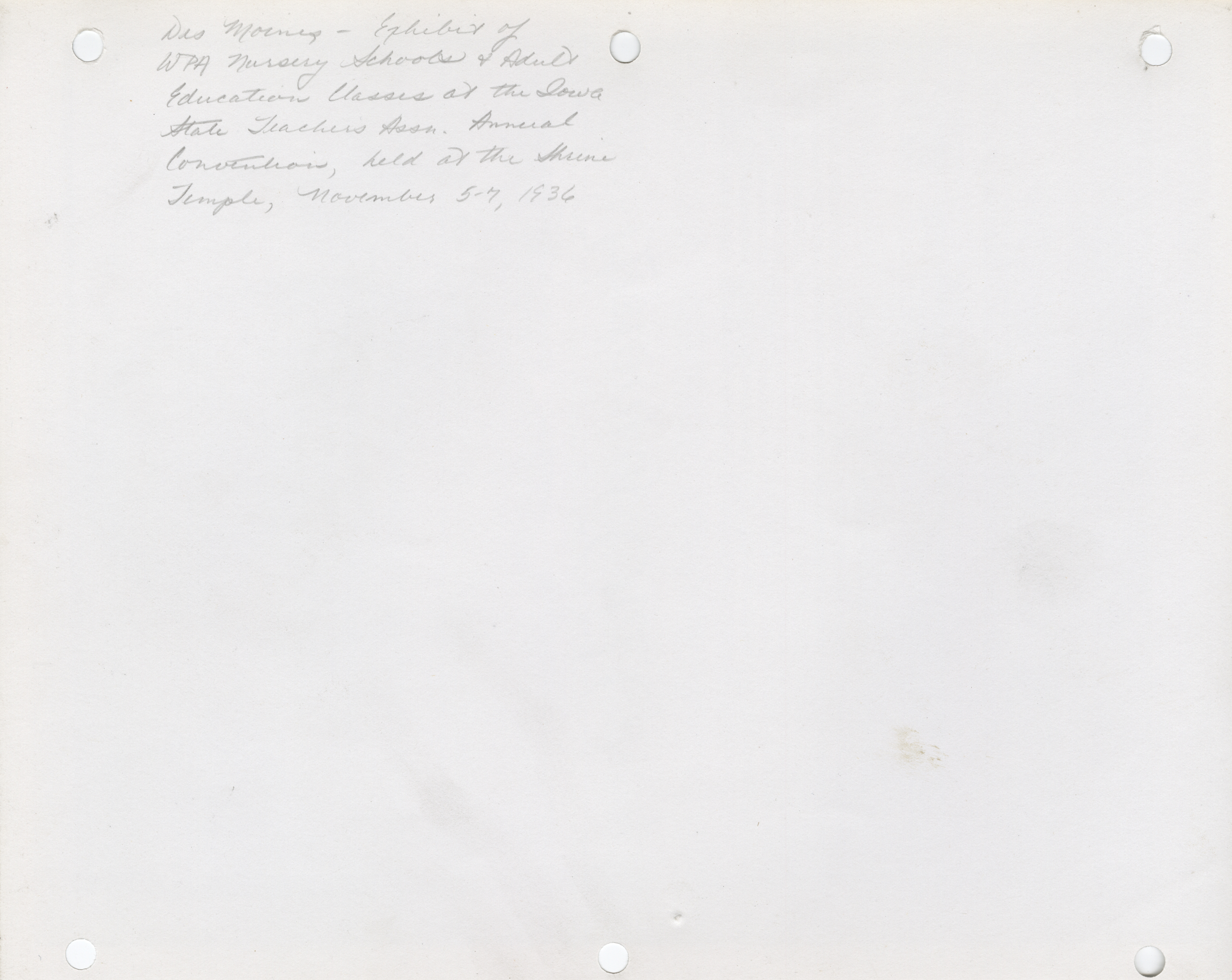 - Exhibits. Des Moines. Exhibit on WPA Nursery Schools and Adult Education Classes. November 5-7, 1936. (5 b/w photographs), 1936