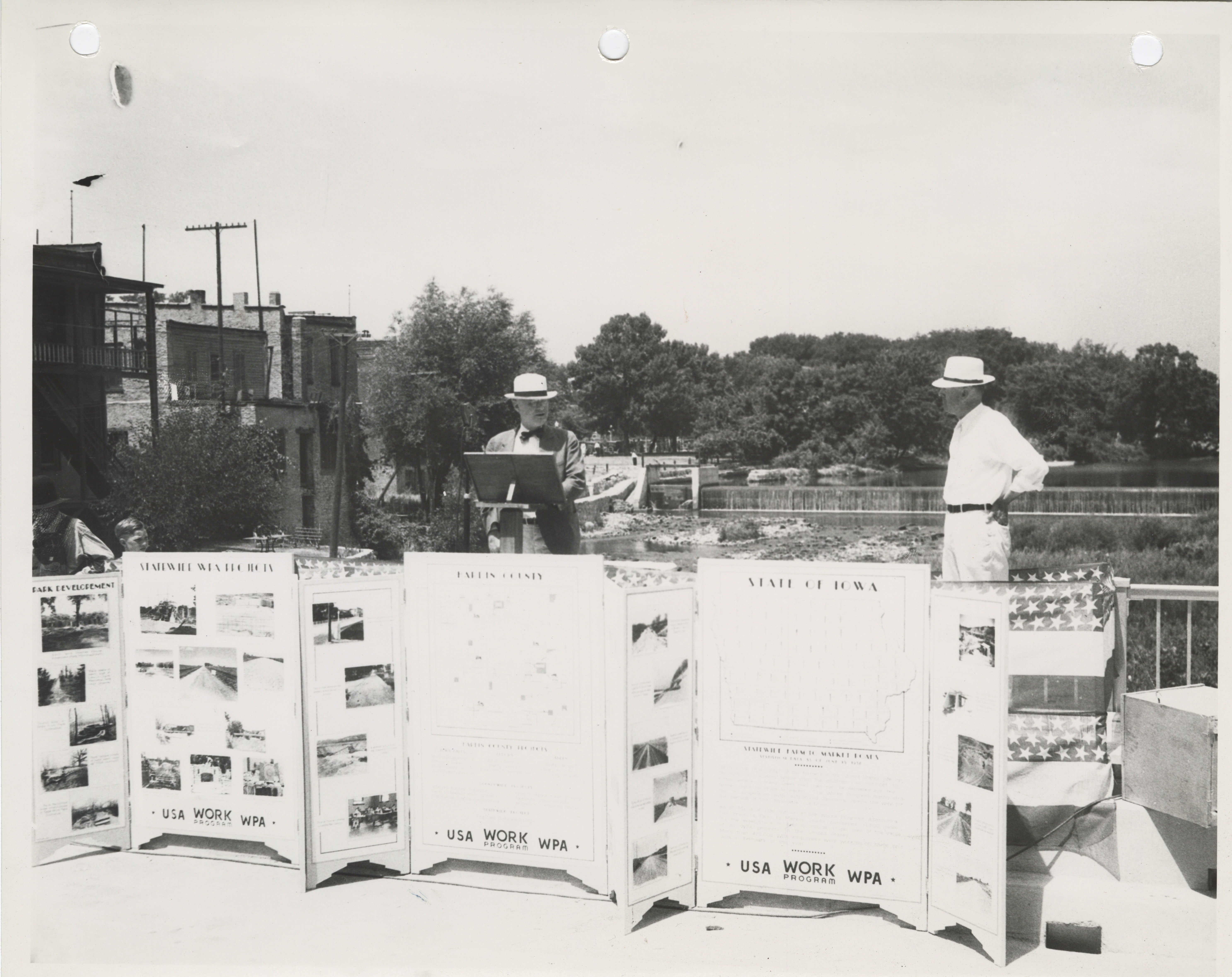 - "Photograph of people gathered during the dedication of Alden Bridge event", Work Projects Administration (Iowa) Photographs, Iowa State University Library Digital Collections