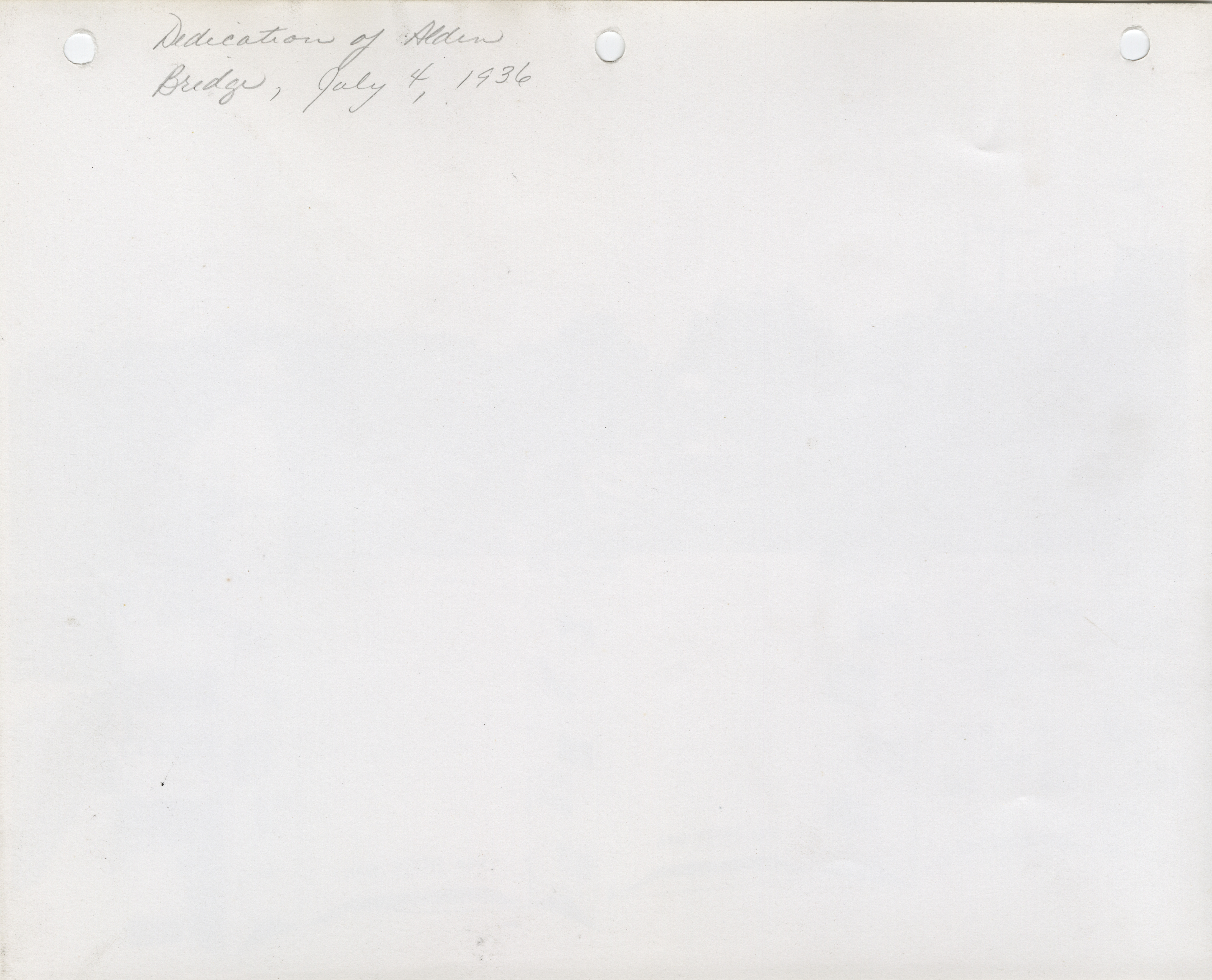 - Dedications. Alden. Bridge Dedication. WPA State Administrator L. S. Hill was the Principal Speaker on the 4th of July. (5 b/w photographs), 1936