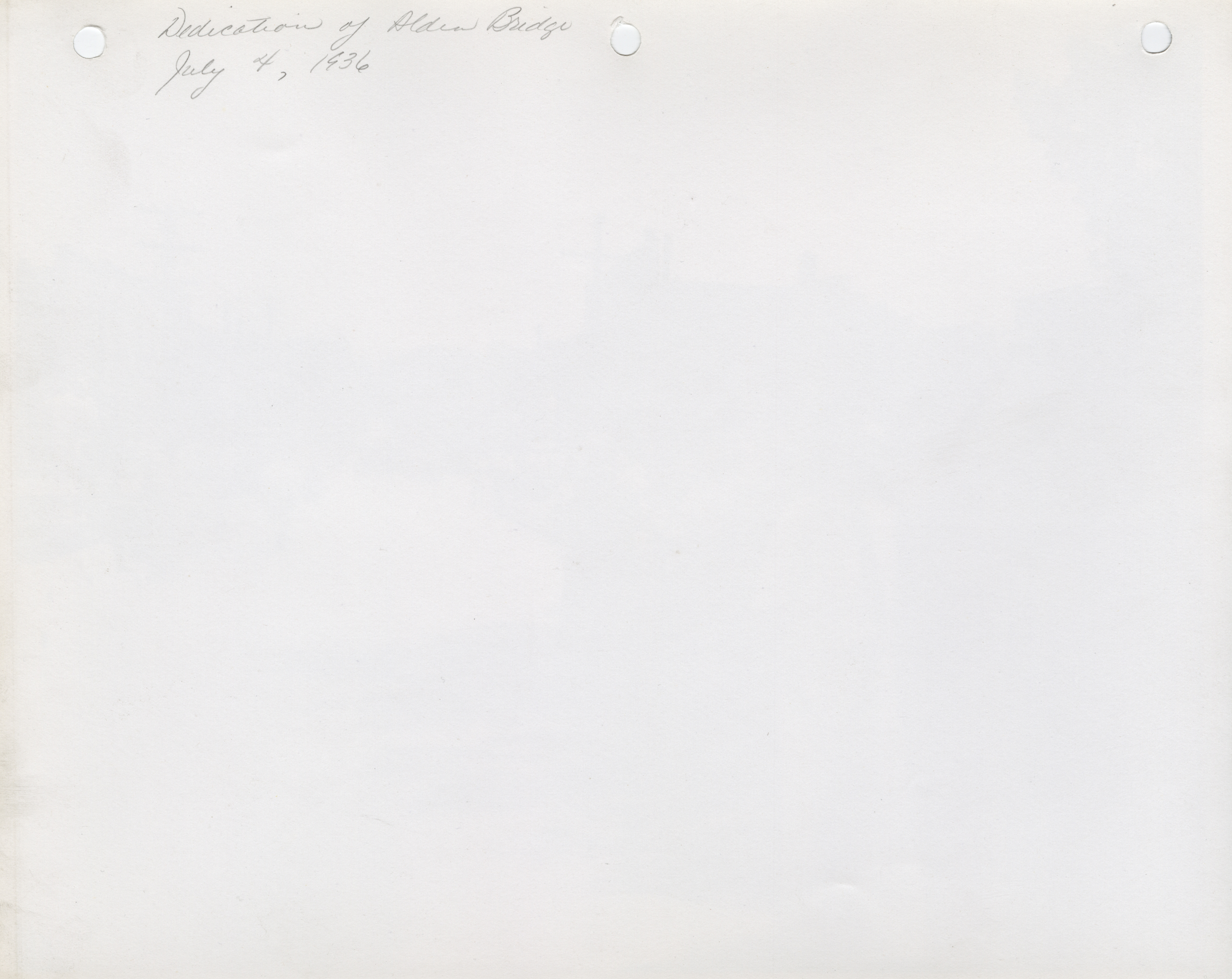 - Dedications. Alden. Bridge Dedication. WPA State Administrator L. S. Hill was the Principal Speaker on the 4th of July. (5 b/w photographs), 1936