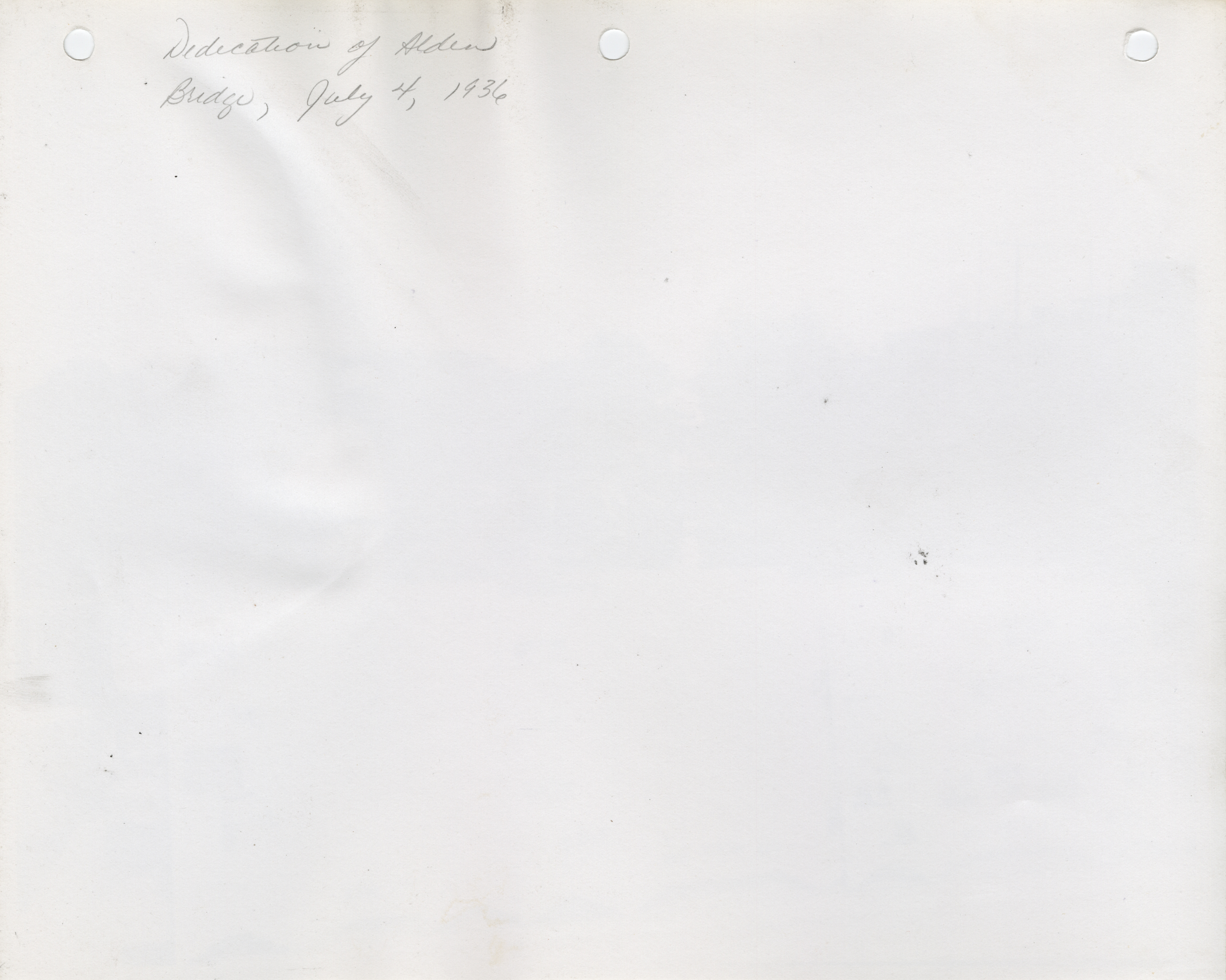 - Dedications. Alden. Bridge Dedication. WPA State Administrator L. S. Hill was the Principal Speaker on the 4th of July. (5 b/w photographs), 1936