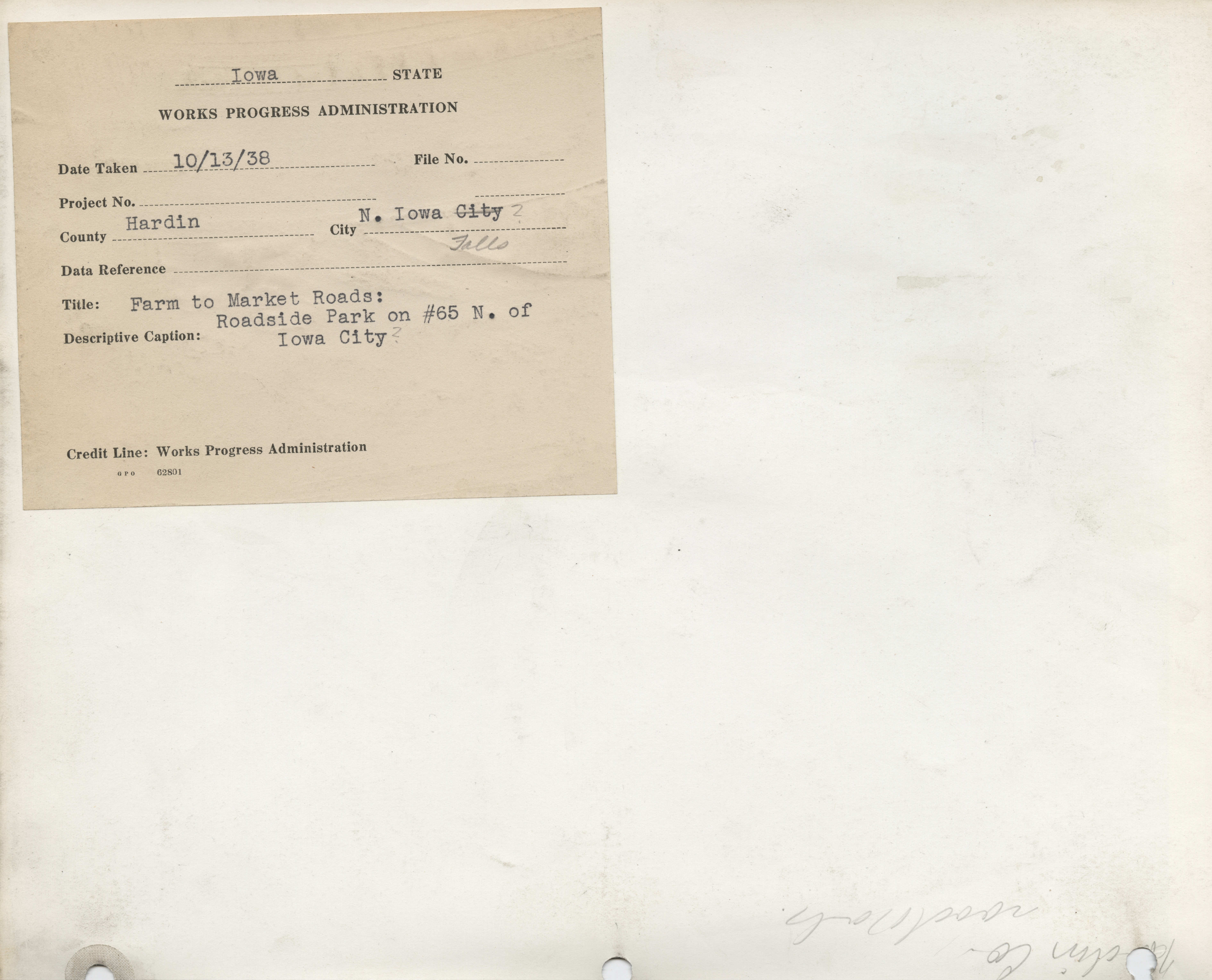 - "Photograph of farm-to-market road along the roadside park in the North of Iowa Falls", Work Projects Administration (Iowa) Photographs, Iowa State University Library Digital Collections