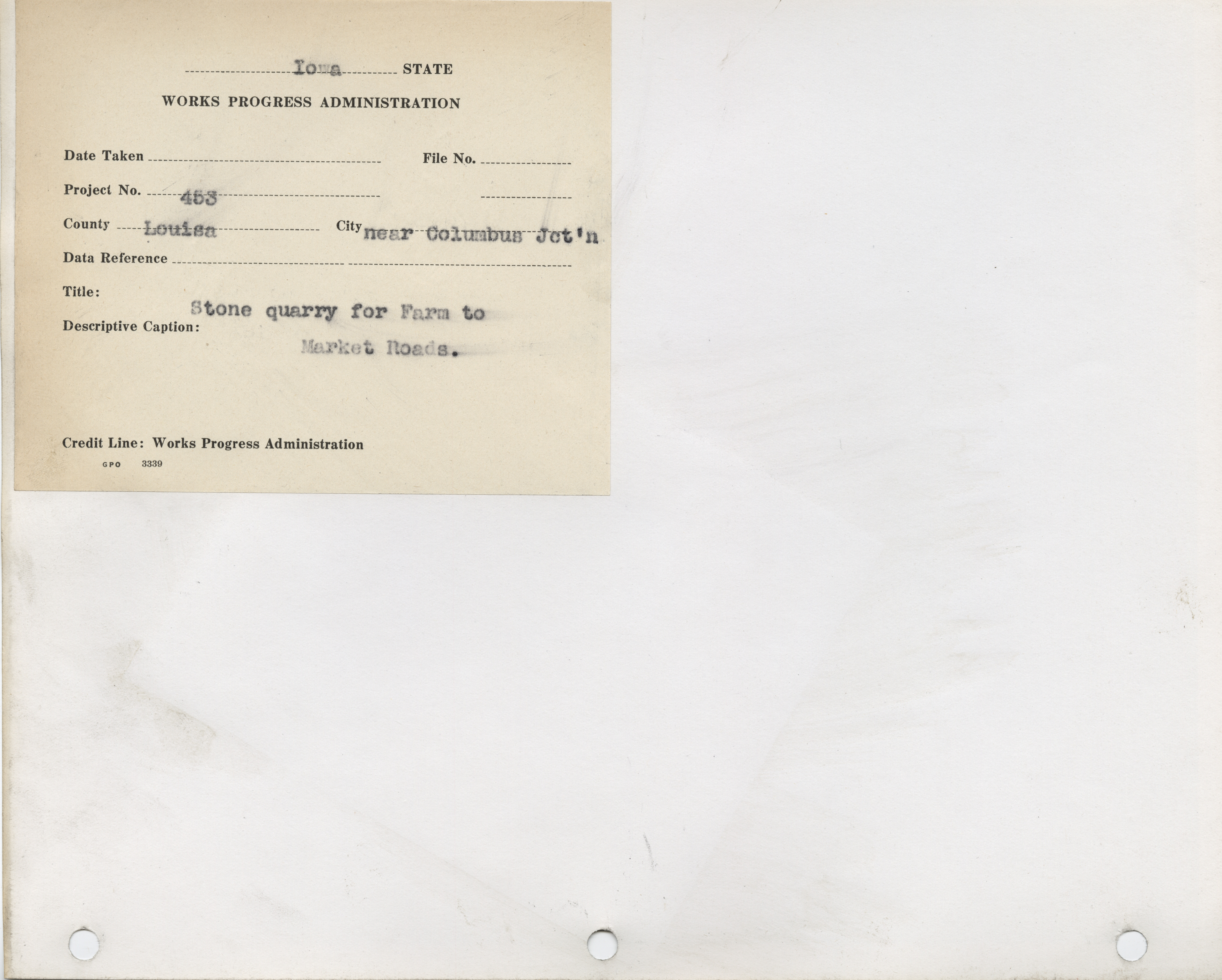 - Farm to Market Roads. Louisa County. Columbus Junction. Stone Quarry. Project 453. (4 b/w photographs), undated