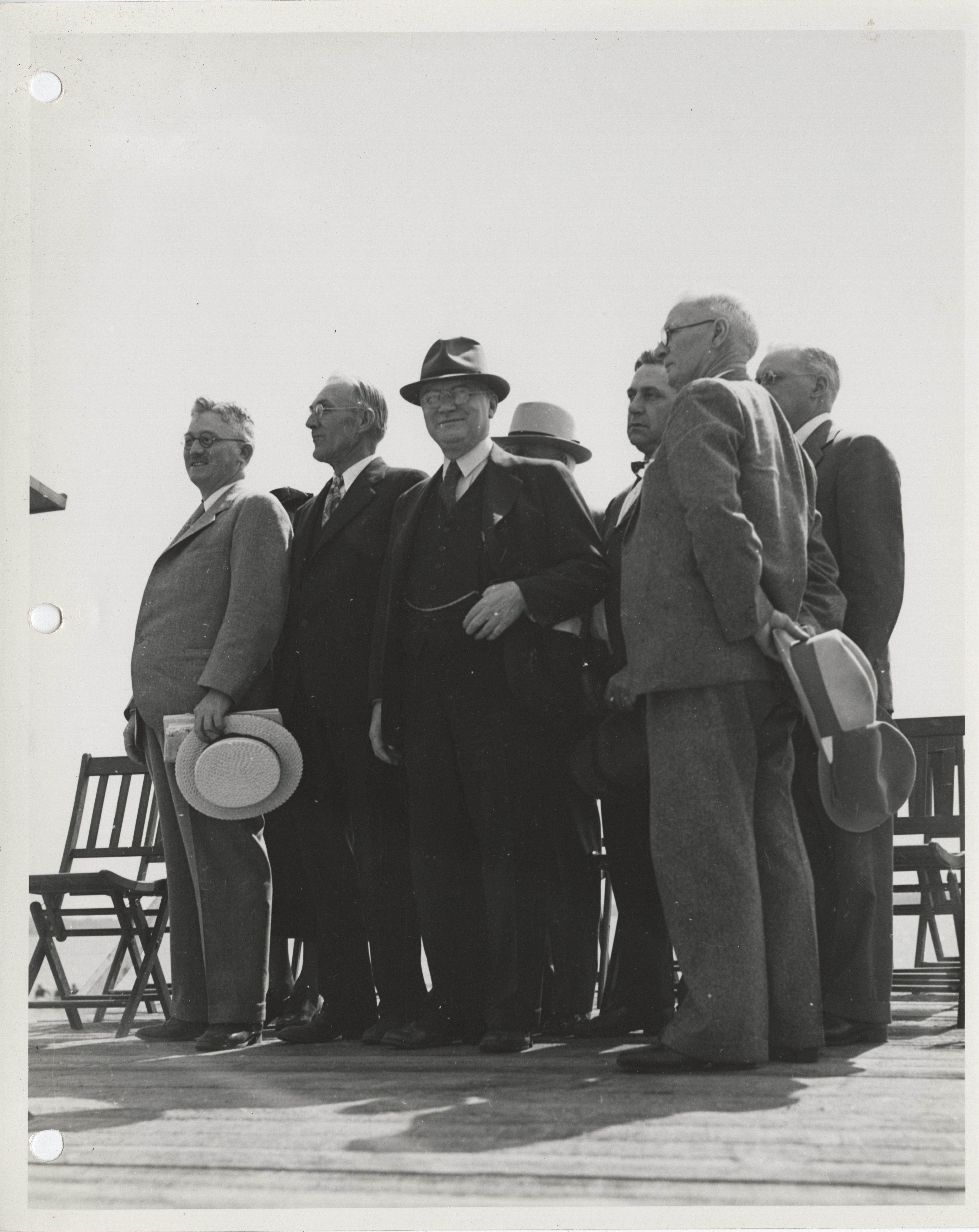 - "Photograph of group of people gathered during the dedication of lakeshore improvements event", Work Projects Administration (Iowa) Photographs, Iowa State University Library Digital Collections