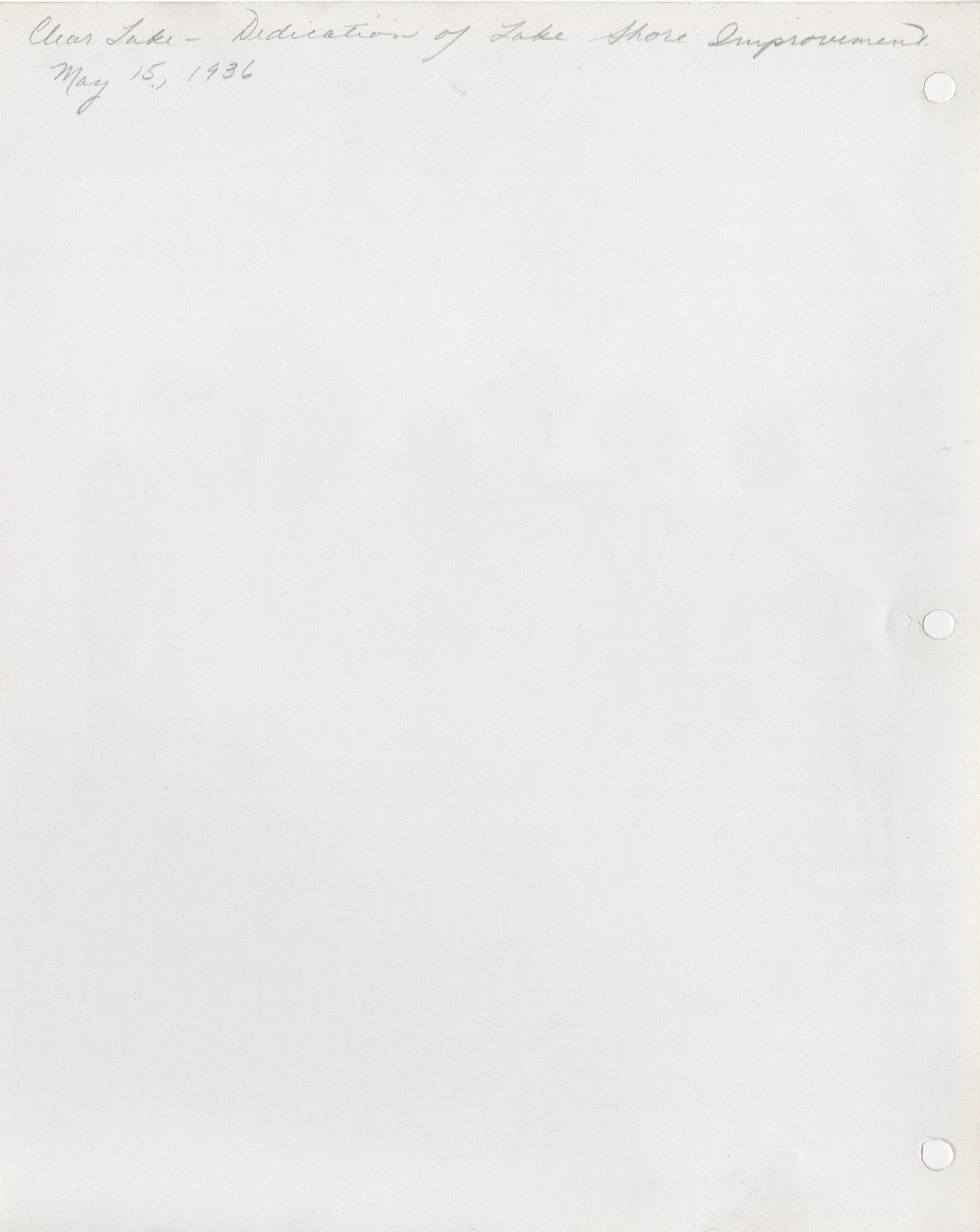 - Dedications. Clear Lake. Dedication of Lakeshore Improvements. Alan Johnson, Special Assistant to the Administrator, was the Principal Speaker. (6 b/w photographs), 1936