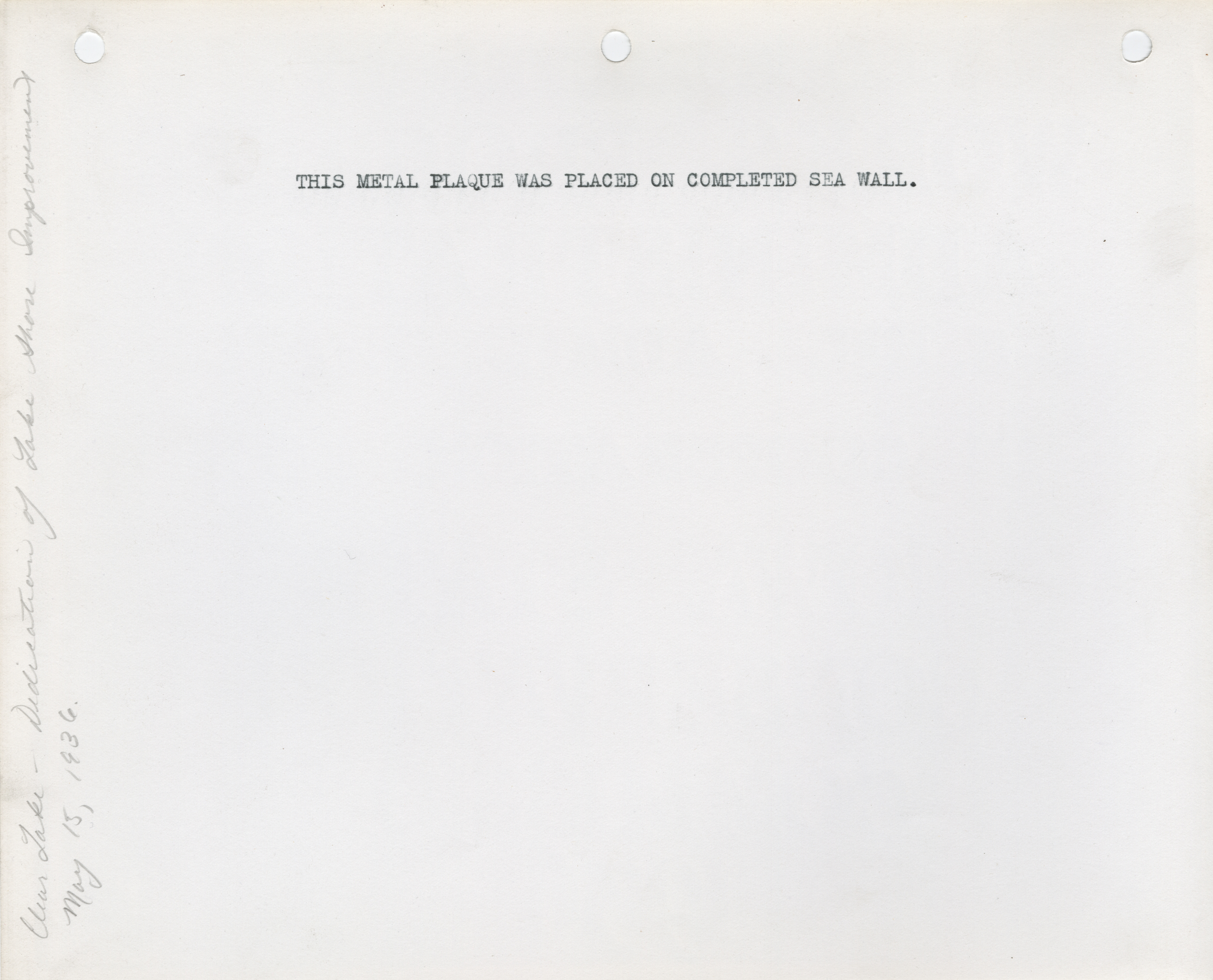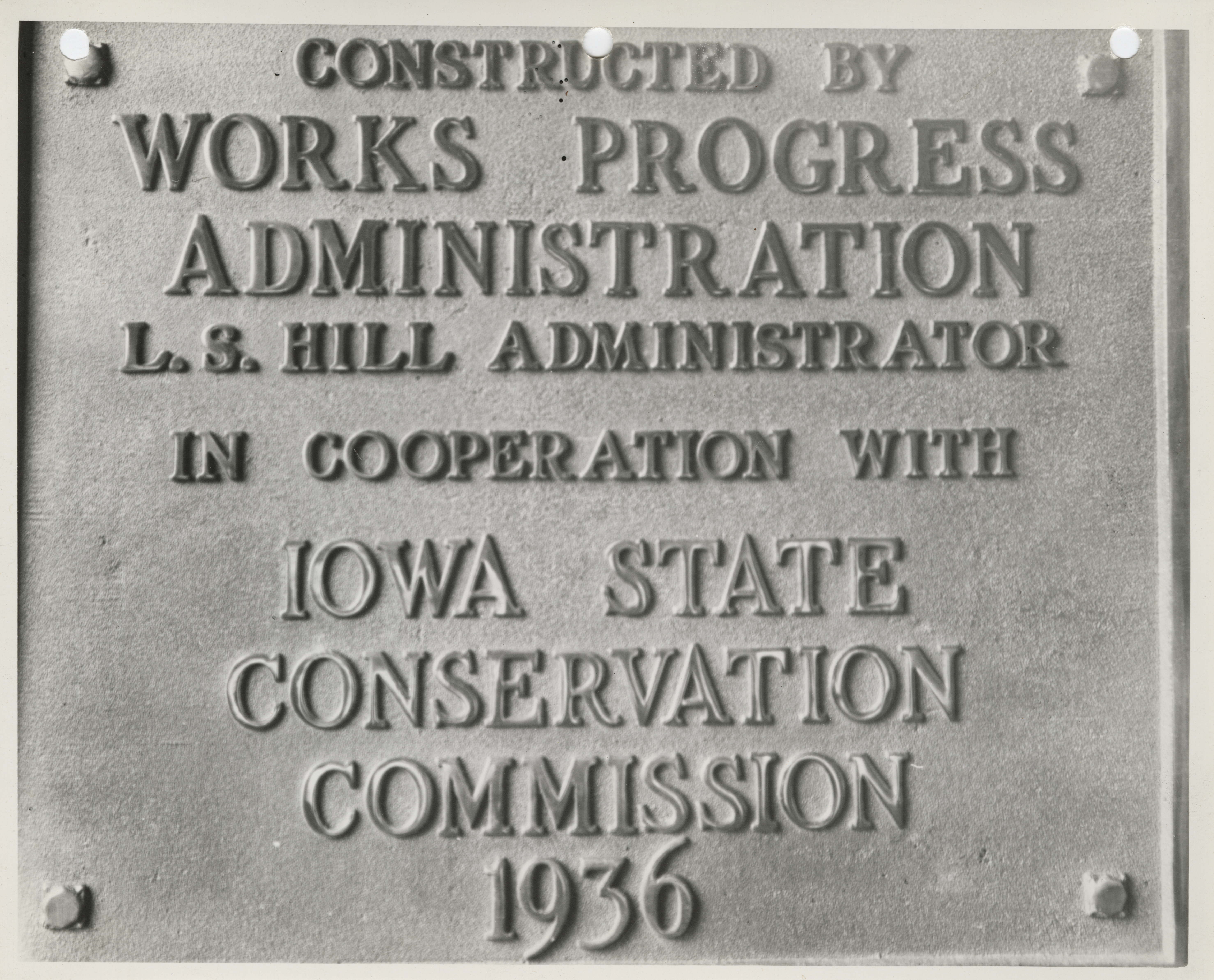 - "Photograph of the metal plaque placed on the completed sea wall", Work Projects Administration (Iowa) Photographs, Iowa State University Library Digital Collections