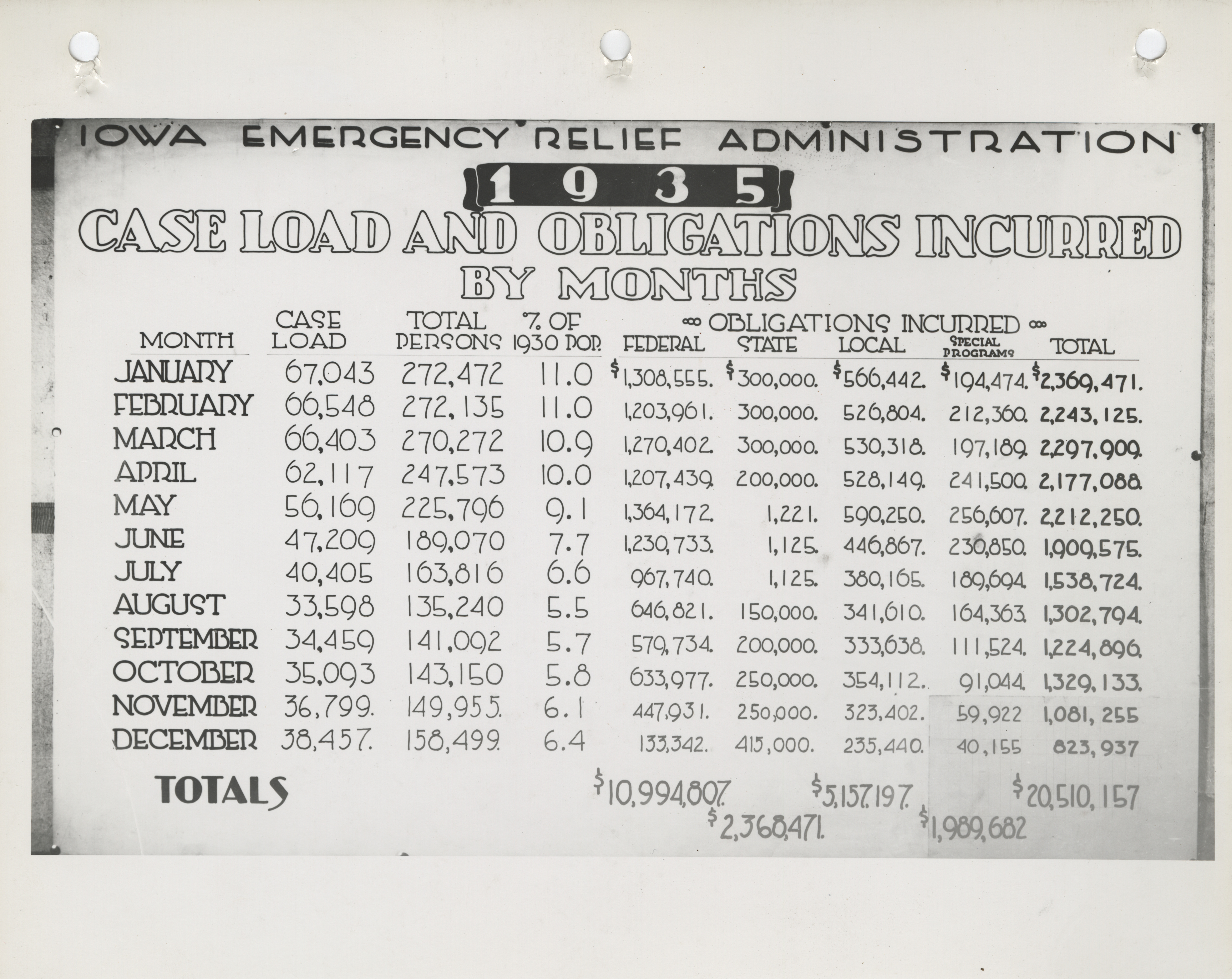 - "Statistical report of the caseload and obligations incurred by the Iowa Emergency Relief Administration in 1935", Work Projects Administration (Iowa) Photographs, Iowa State University Library Digital Collections