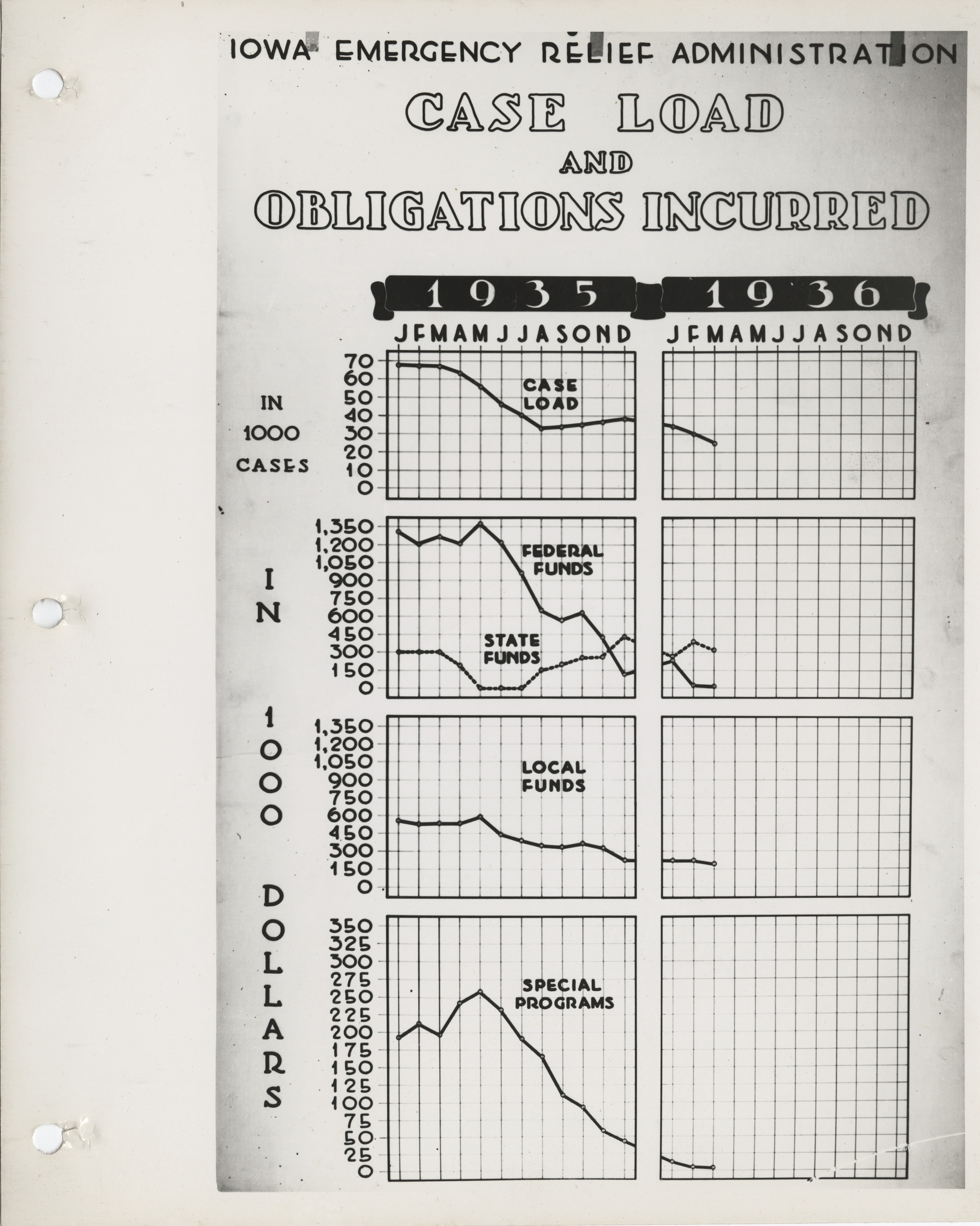 - "Graphs of the caseload and obligations incurred by the Iowa Emergency Relief Administration from 1935 to 1936", Work Projects Administration (Iowa) Photographs, Iowa State University Library Digital Collections