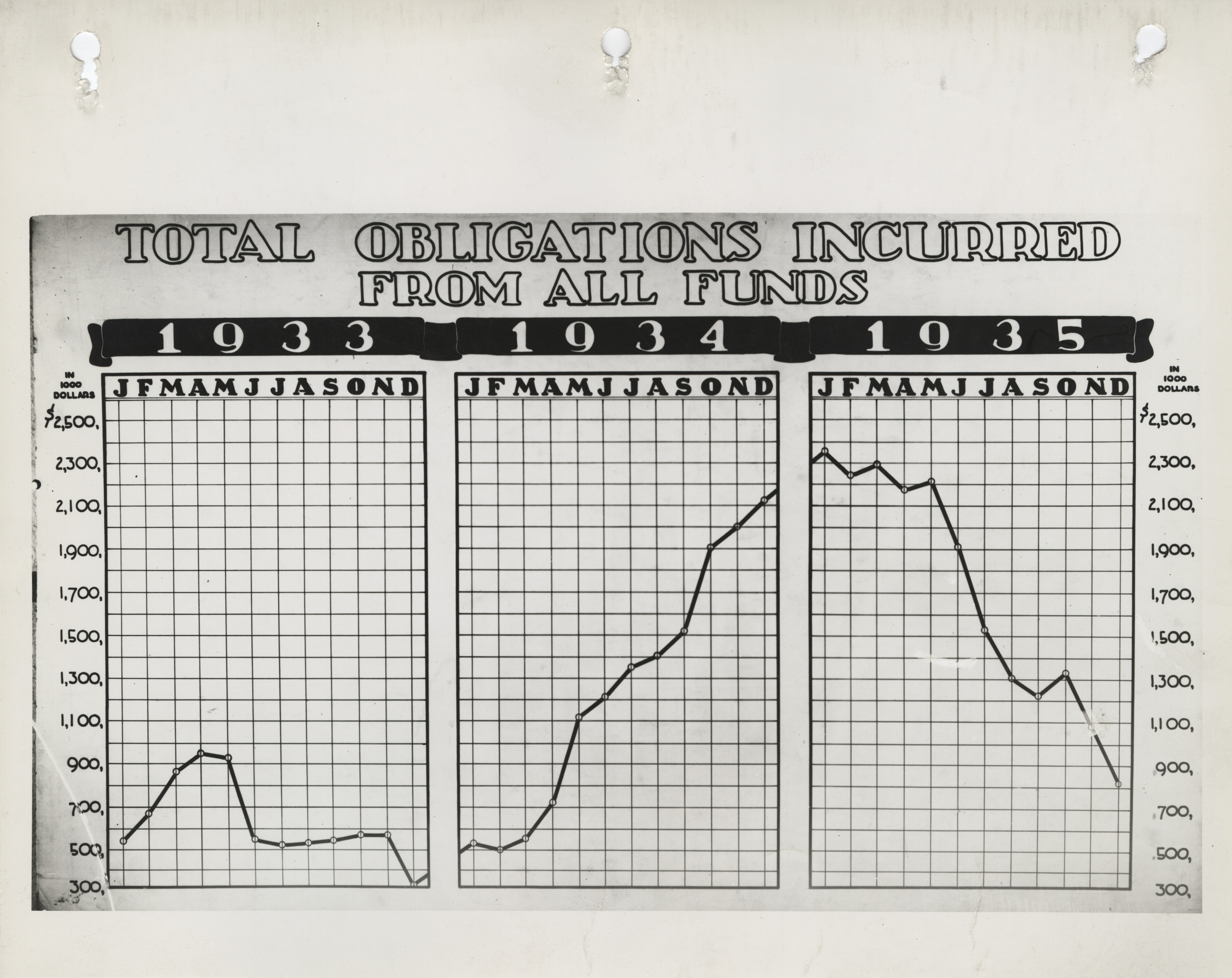 - Graphs of the total obligations incurred from all funds by the Iowa Emergency Relief Administration from 1933 to 1935