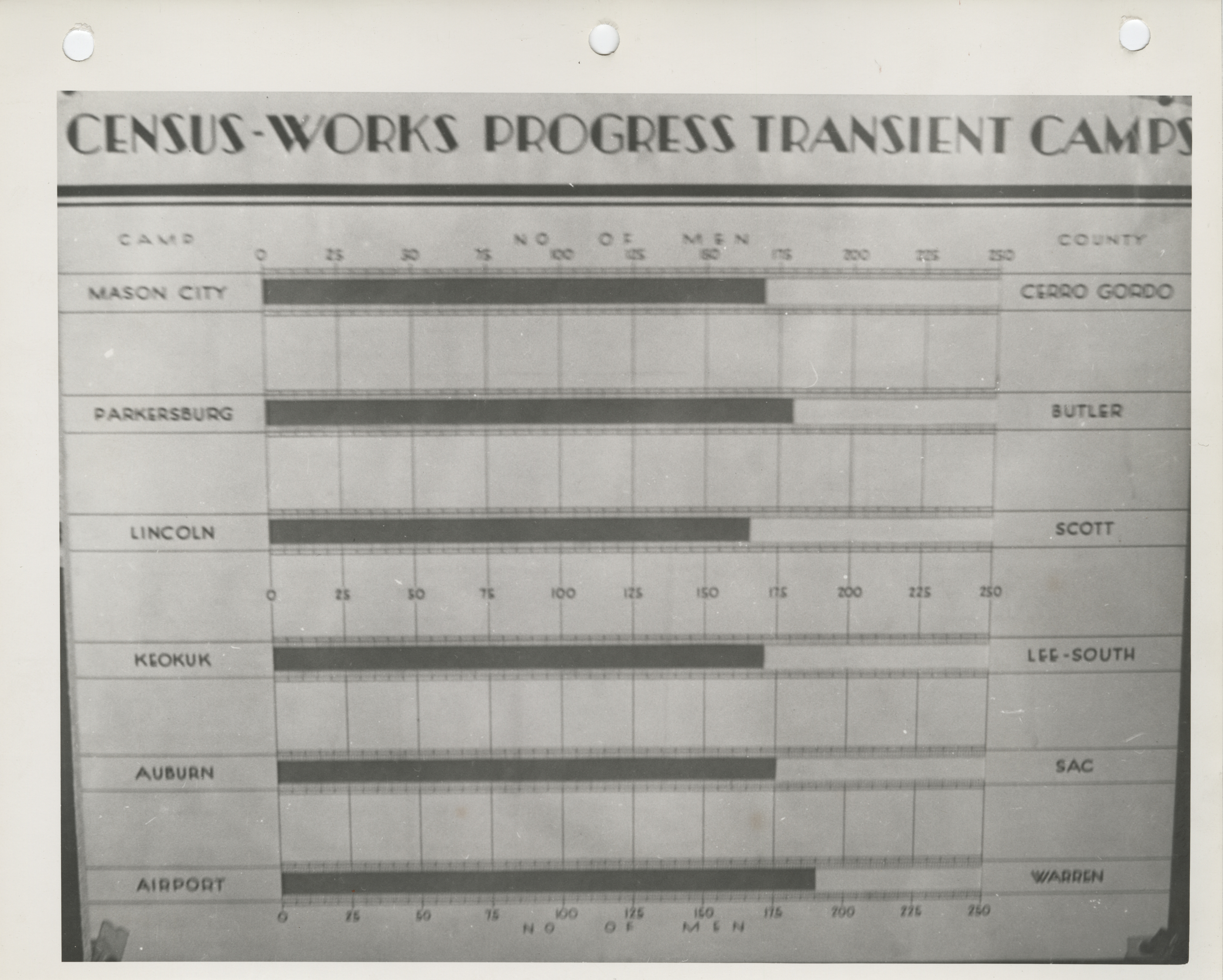 - "Graph of the census works progress transient camps", Work Projects Administration (Iowa) Photographs, Iowa State University Library Digital Collections