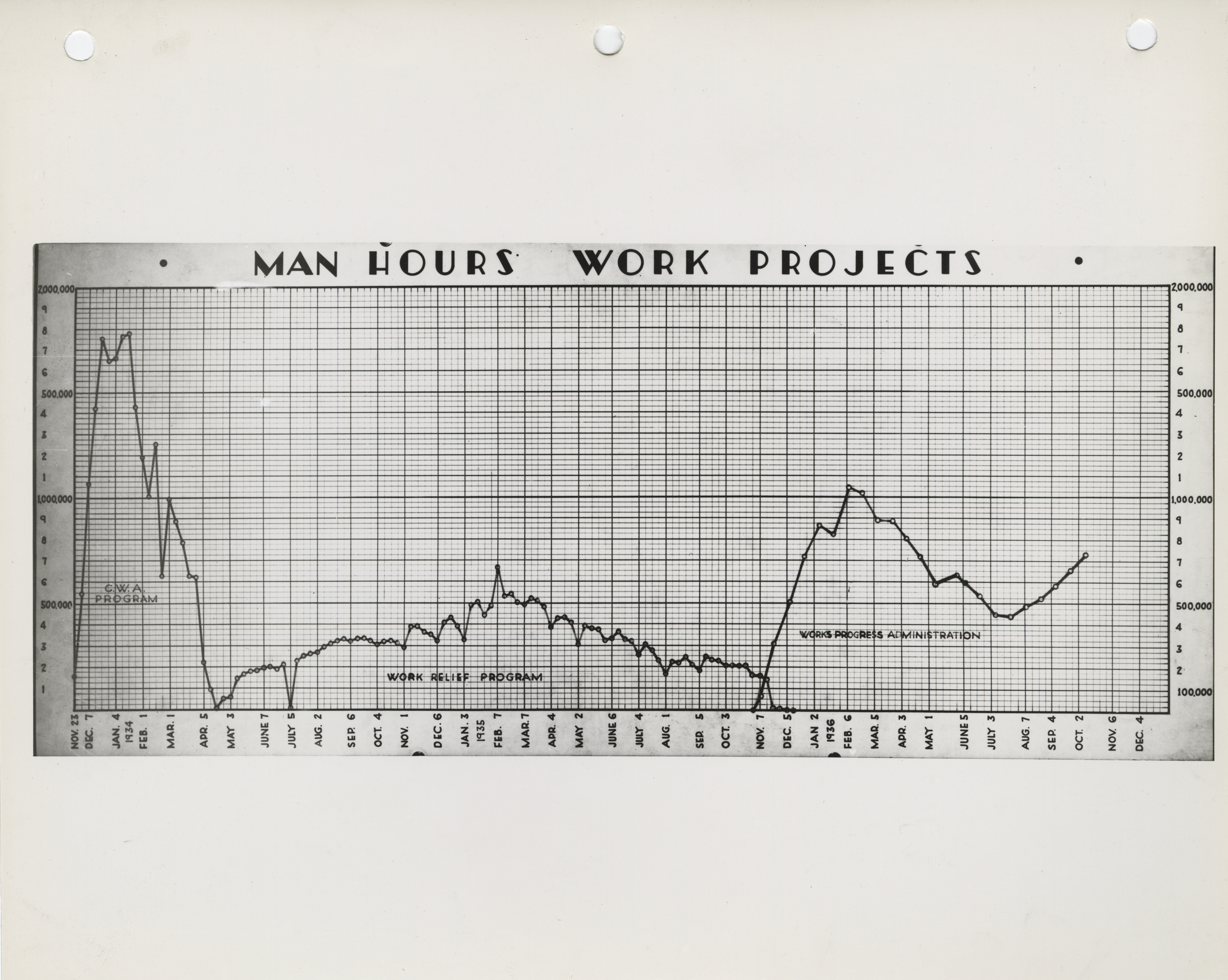 - "Graph of the WPA man-hours work projects", Work Projects Administration (Iowa) Photographs, Iowa State University Library Digital Collections