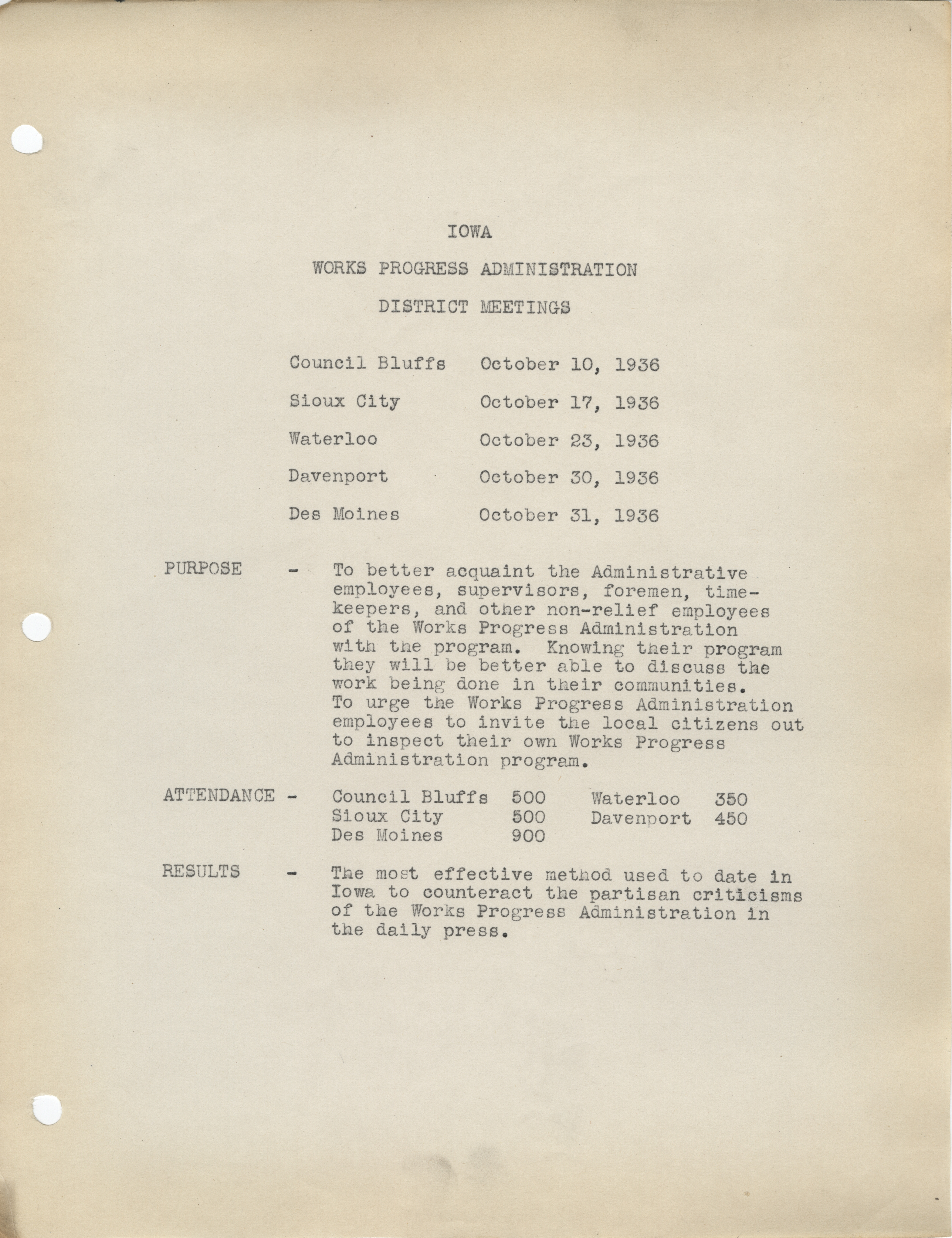 District meetings of Iowa Works Progress Administration, October 1936 Item Info
