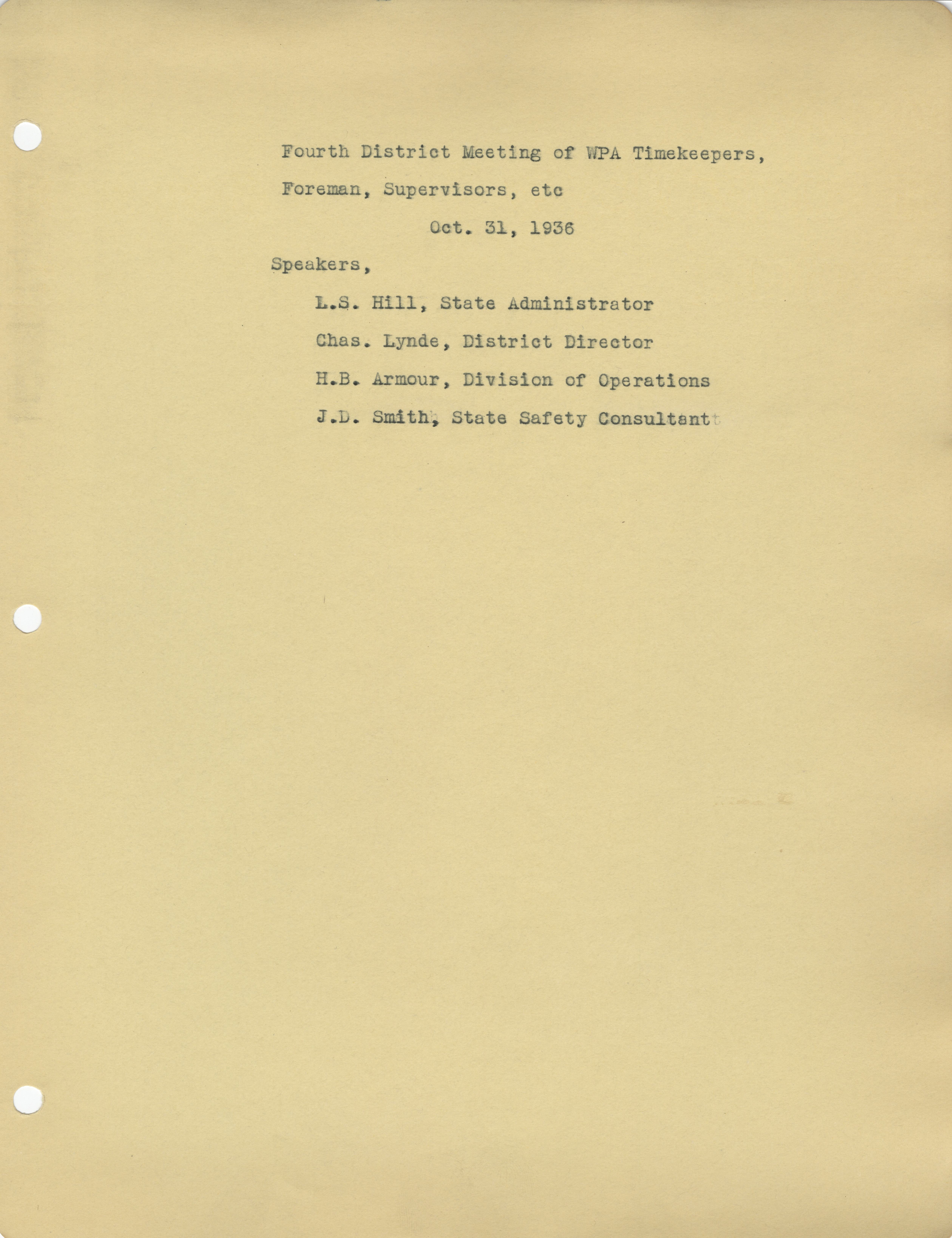 - Fourth district meeting of Works Progress Administration, October 31, 1936