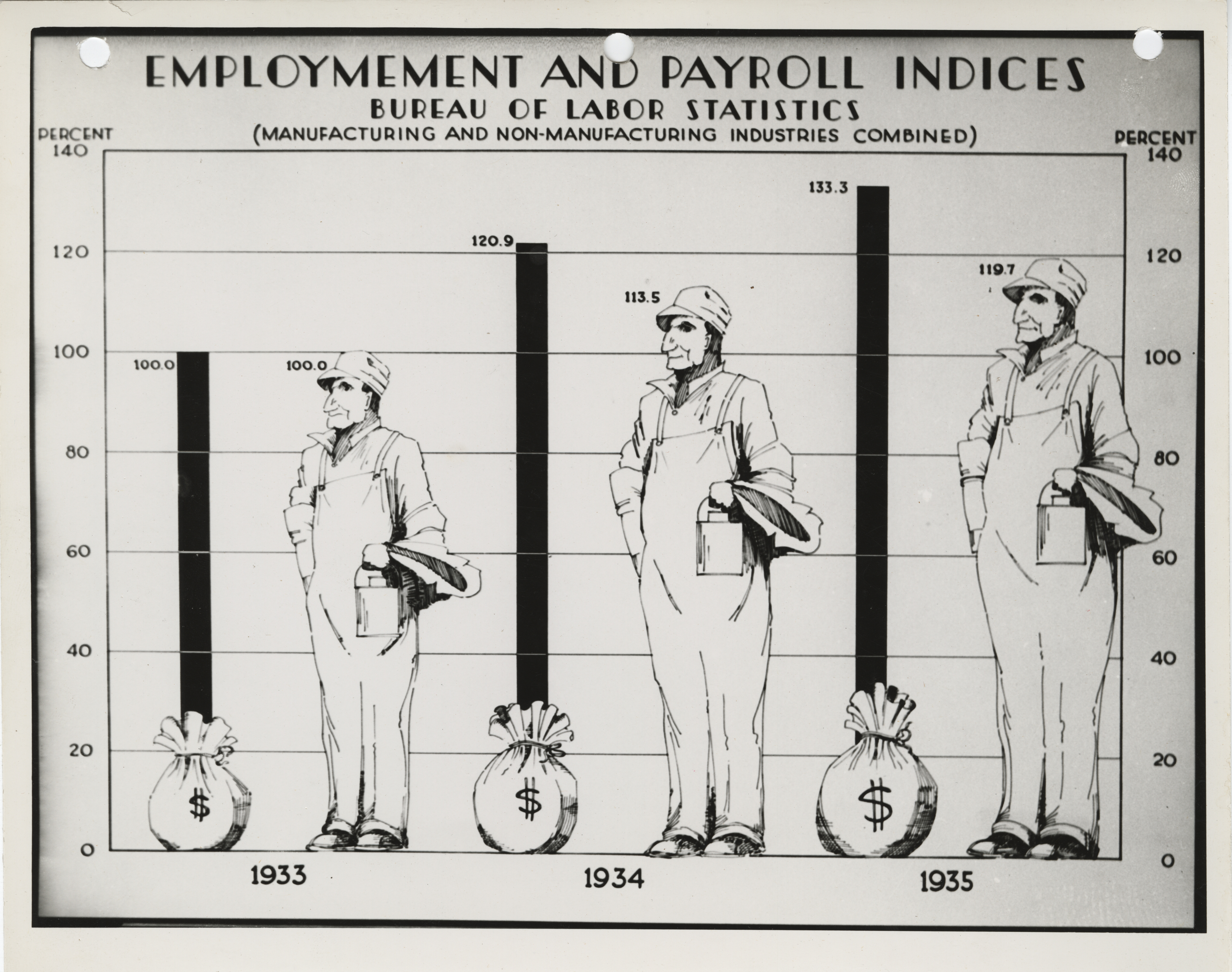 - "Graph of the WPA employment and payroll indices from 1933 to 1935", Work Projects Administration (Iowa) Photographs, Iowa State University Library Digital Collections