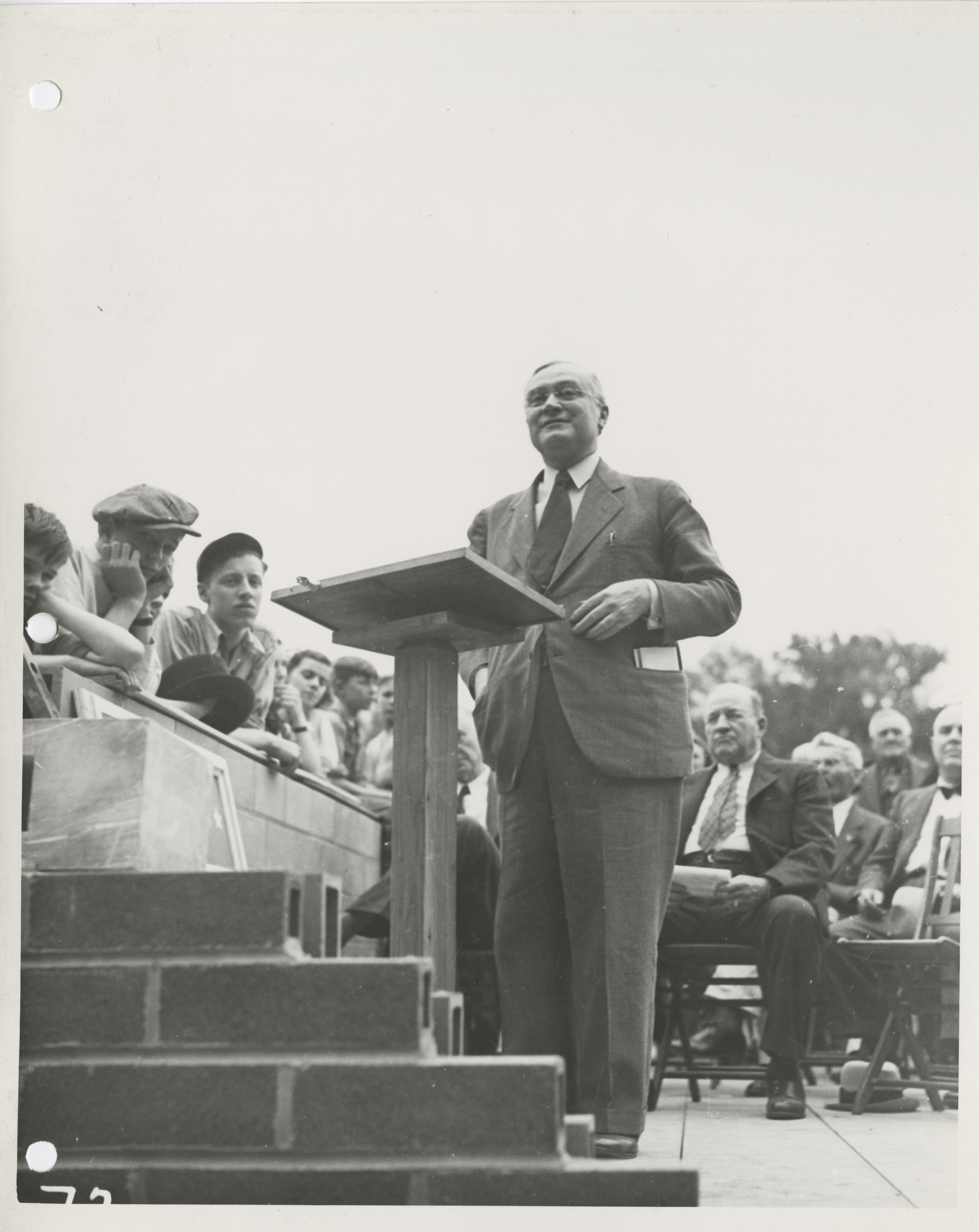 - "Photograph of group of people gathered during the dedication of bathhouse and shelter house in Riverview Park", Work Projects Administration (Iowa) Photographs, Iowa State University Library Digital Collections
