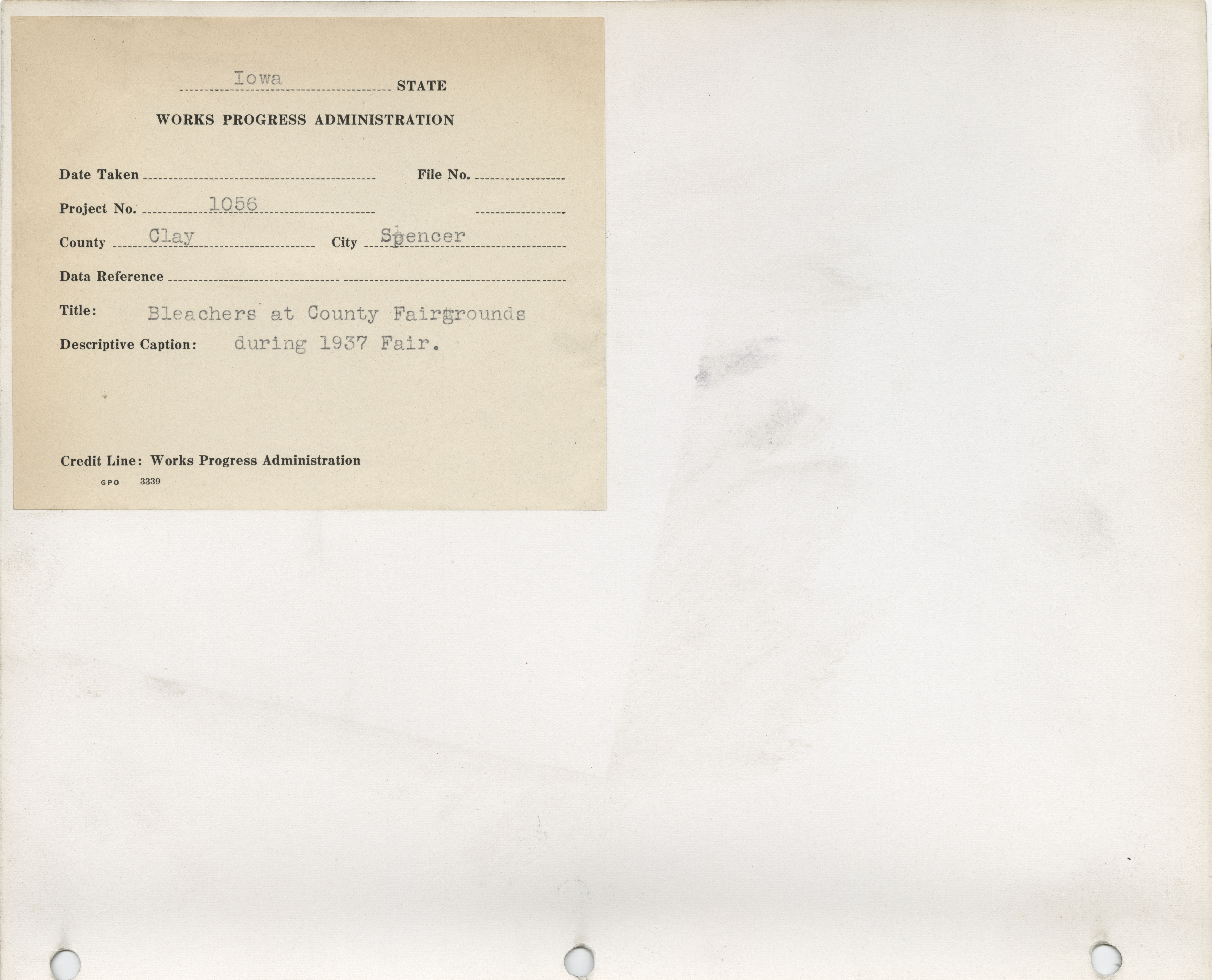 - "Photograph of people seated on the bleachers at Clay County Fairgrounds during the 1937 fair", Work Projects Administration (Iowa) Photographs, Iowa State University Library Digital Collections