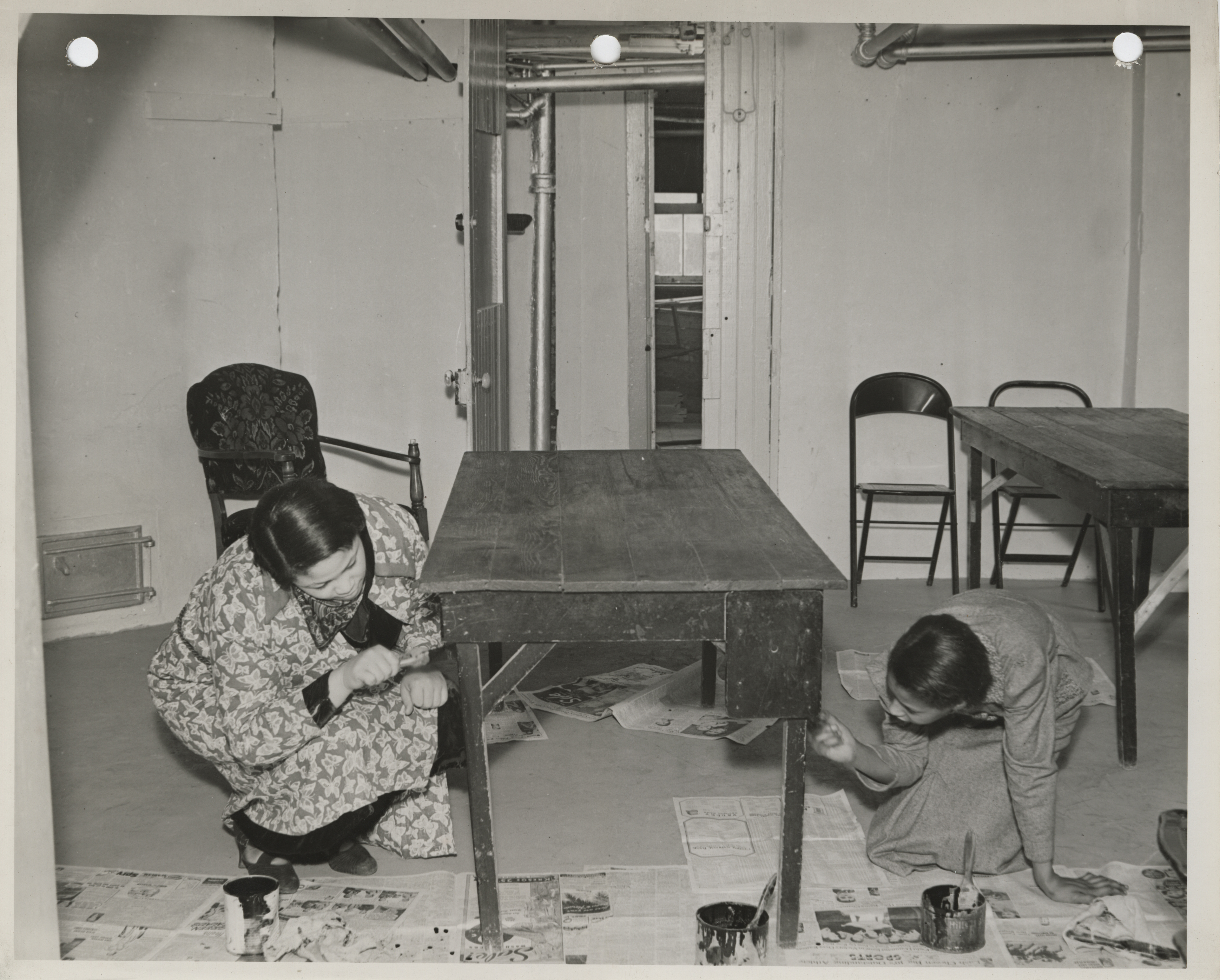 - "Photograph of two people painting a table at the East Side Community House in Des Moines", Work Projects Administration (Iowa) Photographs, Iowa State University Library Digital Collections
