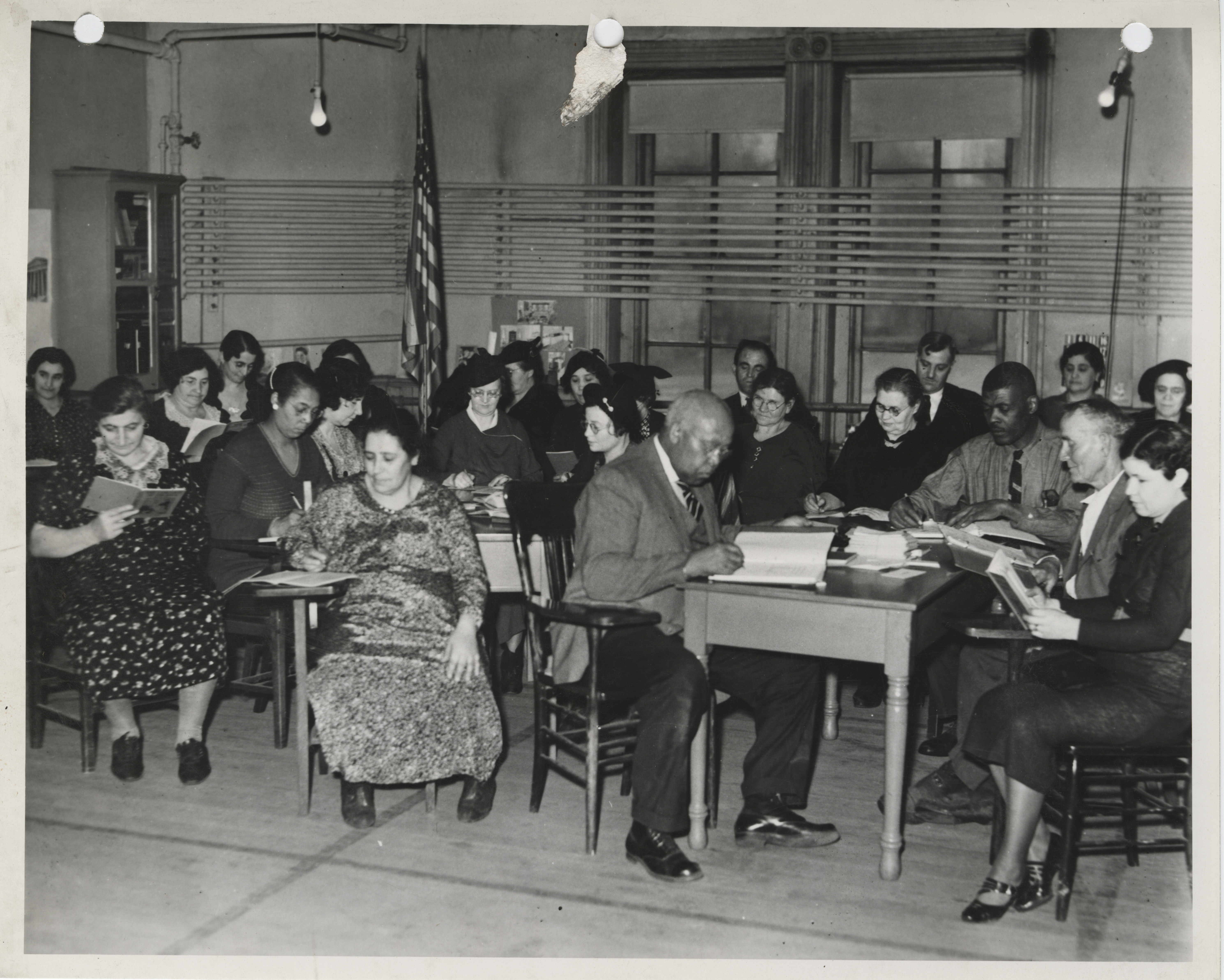 - "Photograph of an Americanization class at Longfellow School in Des Moines", Work Projects Administration (Iowa) Photographs, Iowa State University Library Digital Collections