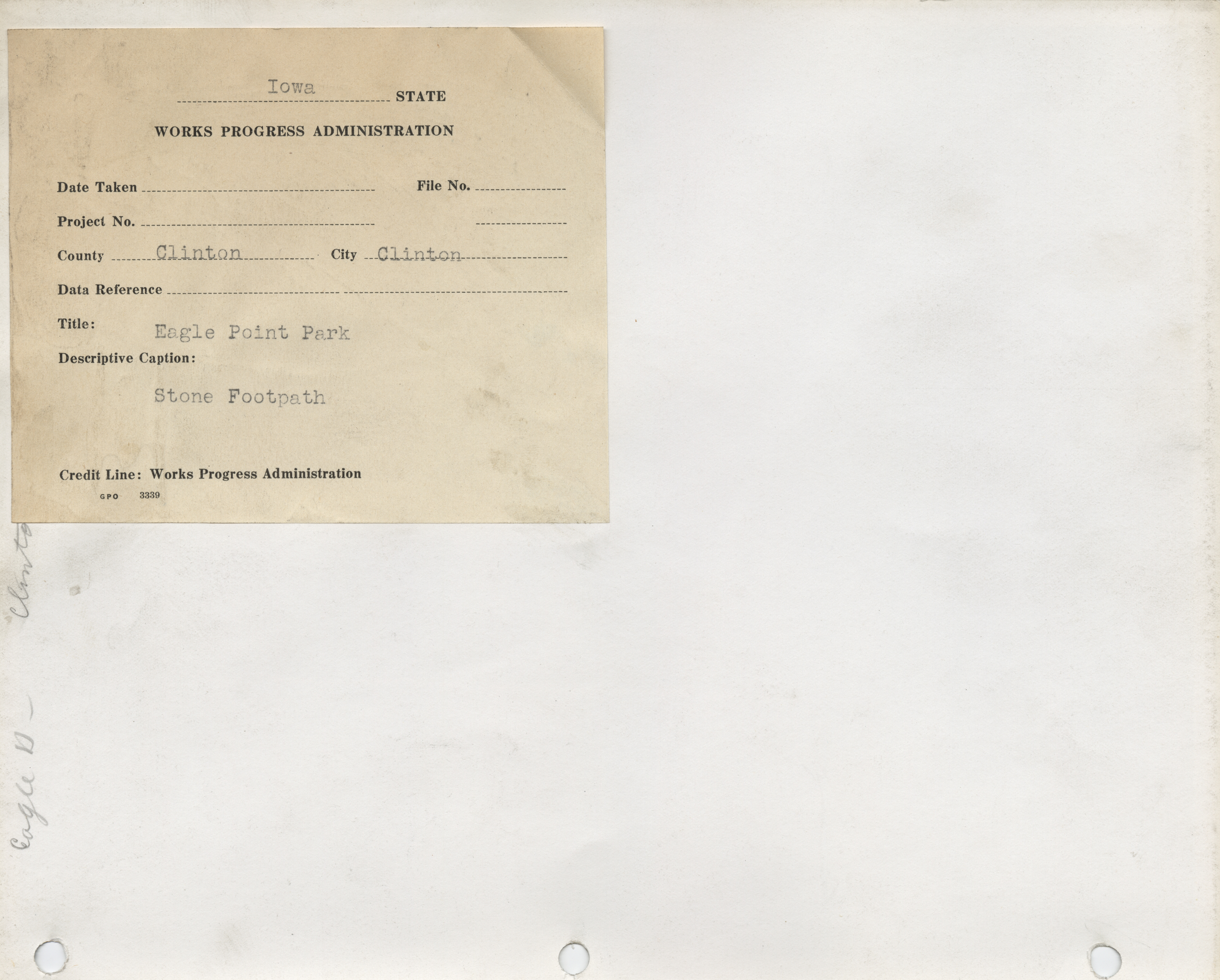 - "Photograph of a stone footpath at Eagle Point Park in Clinton", Work Projects Administration (Iowa) Photographs, Iowa State University Library Digital Collections