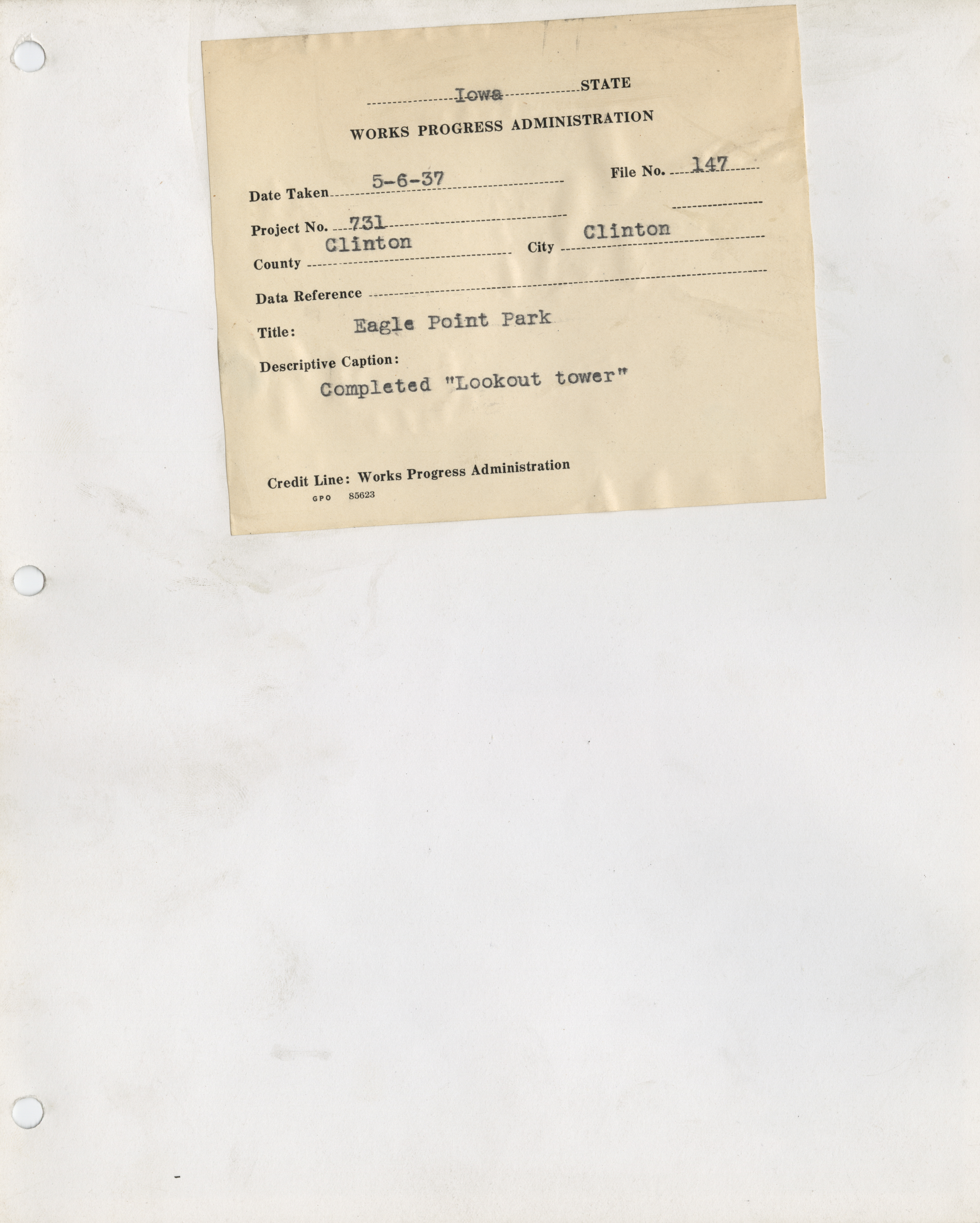 - "Photograph of a lookout tower at Eagle Point Park in Clinton", Work Projects Administration (Iowa) Photographs, Iowa State University Library Digital Collections