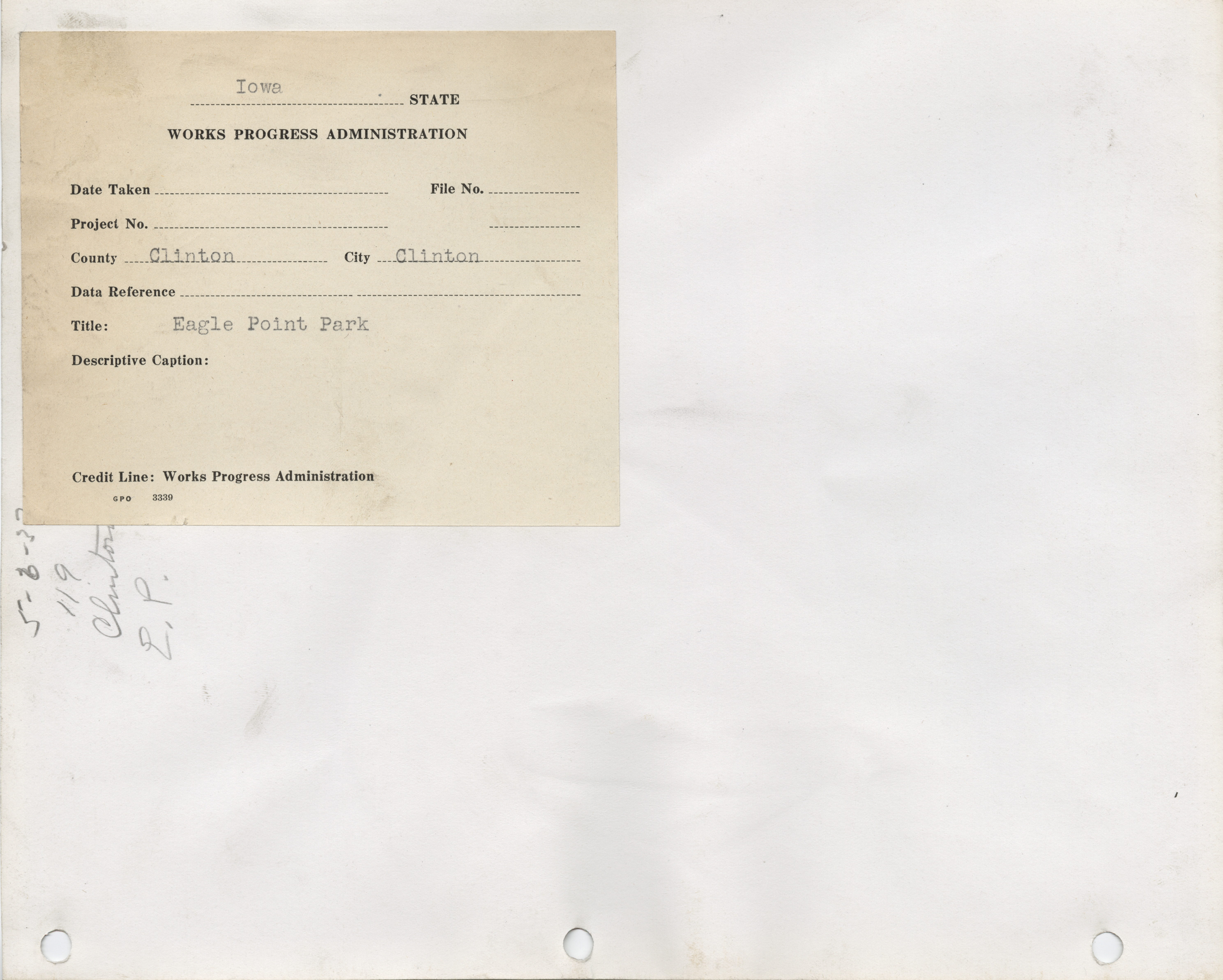 - Parks. Clinton County. Clinton. Eagle Point Park Structures. Project 231. (5 b/w photographs), 1937, undated