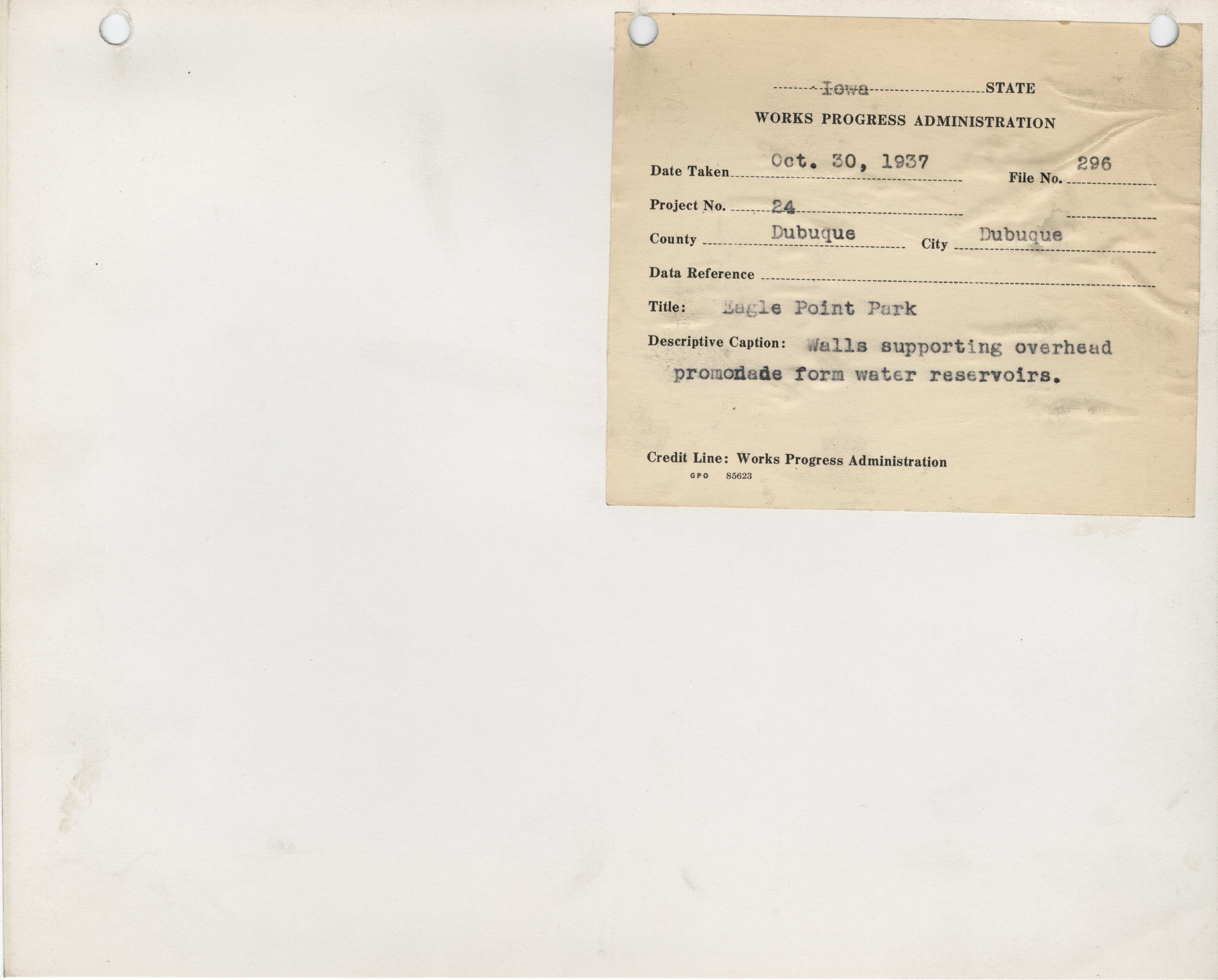 - "Photograph of walls supporting a promenade at Eagle Point Park in Dubuque", Work Projects Administration (Iowa) Photographs, Iowa State University Library Digital Collections