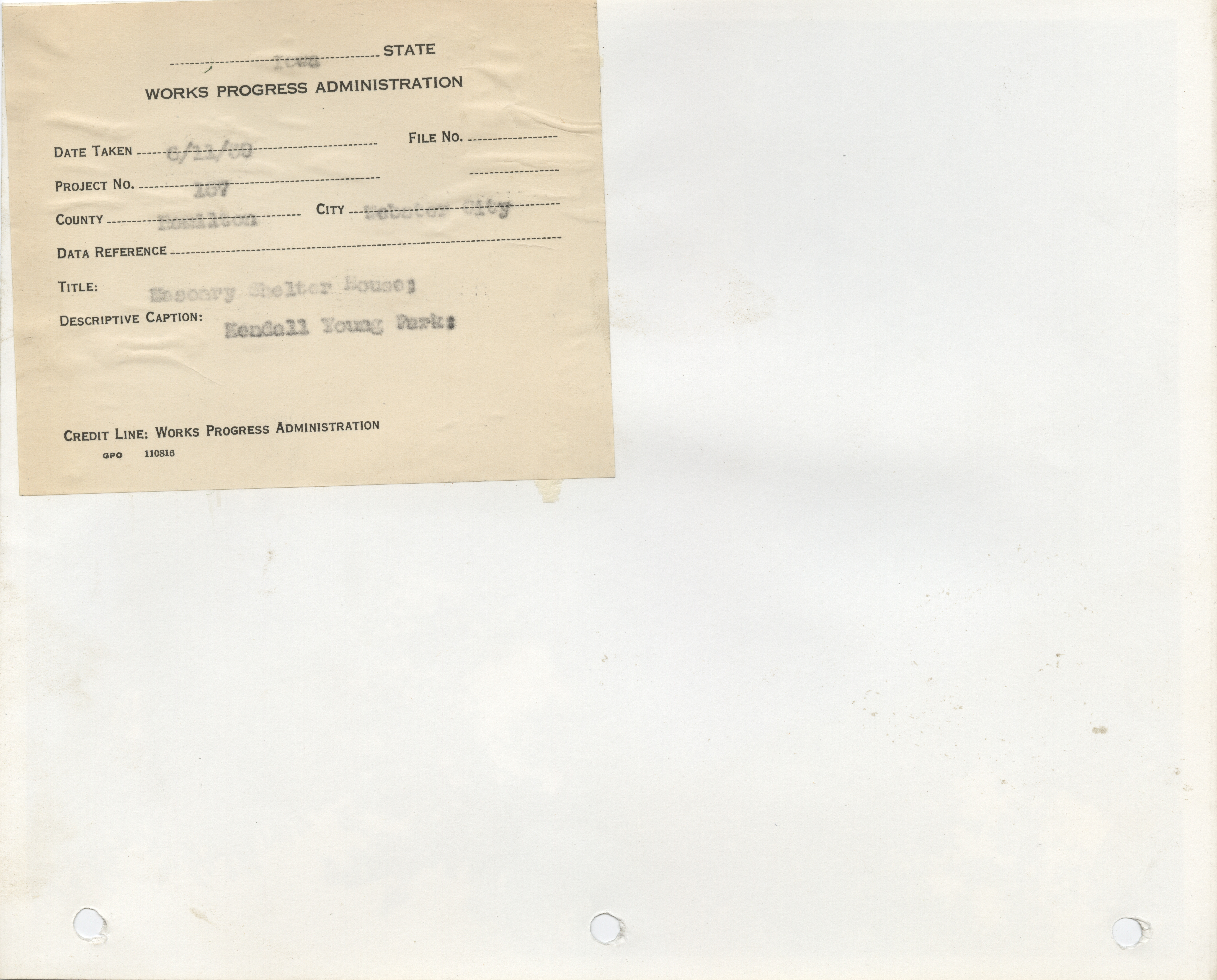 - "Photograph of a masonry shelter house at Kendall Young Park in Webster City", Work Projects Administration (Iowa) Photographs, Iowa State University Library Digital Collections