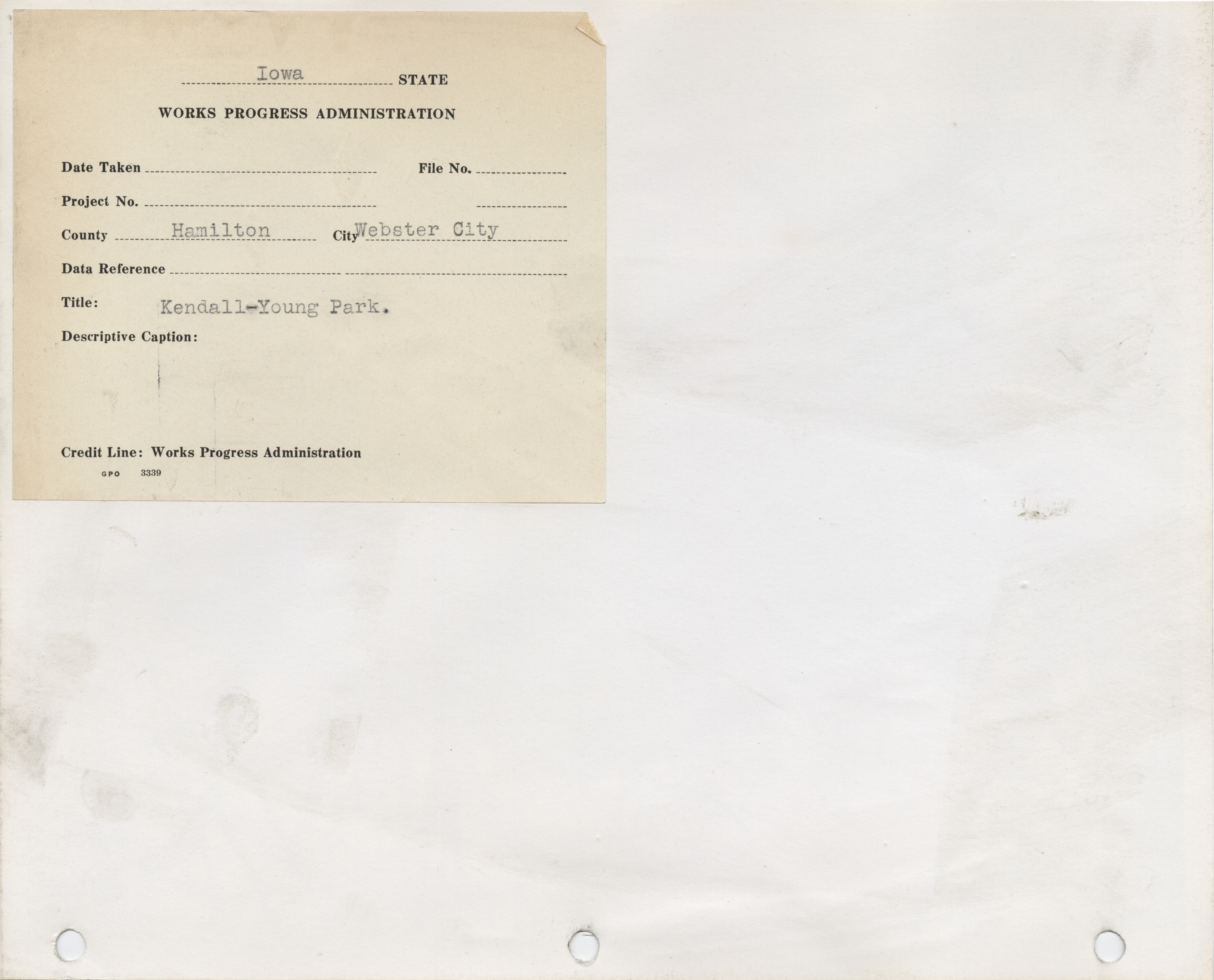 - Parks. Hamilton County. Webster City. Kendall-Young Park. Project 157. (7 b/w photographs), 1937-1939, undated