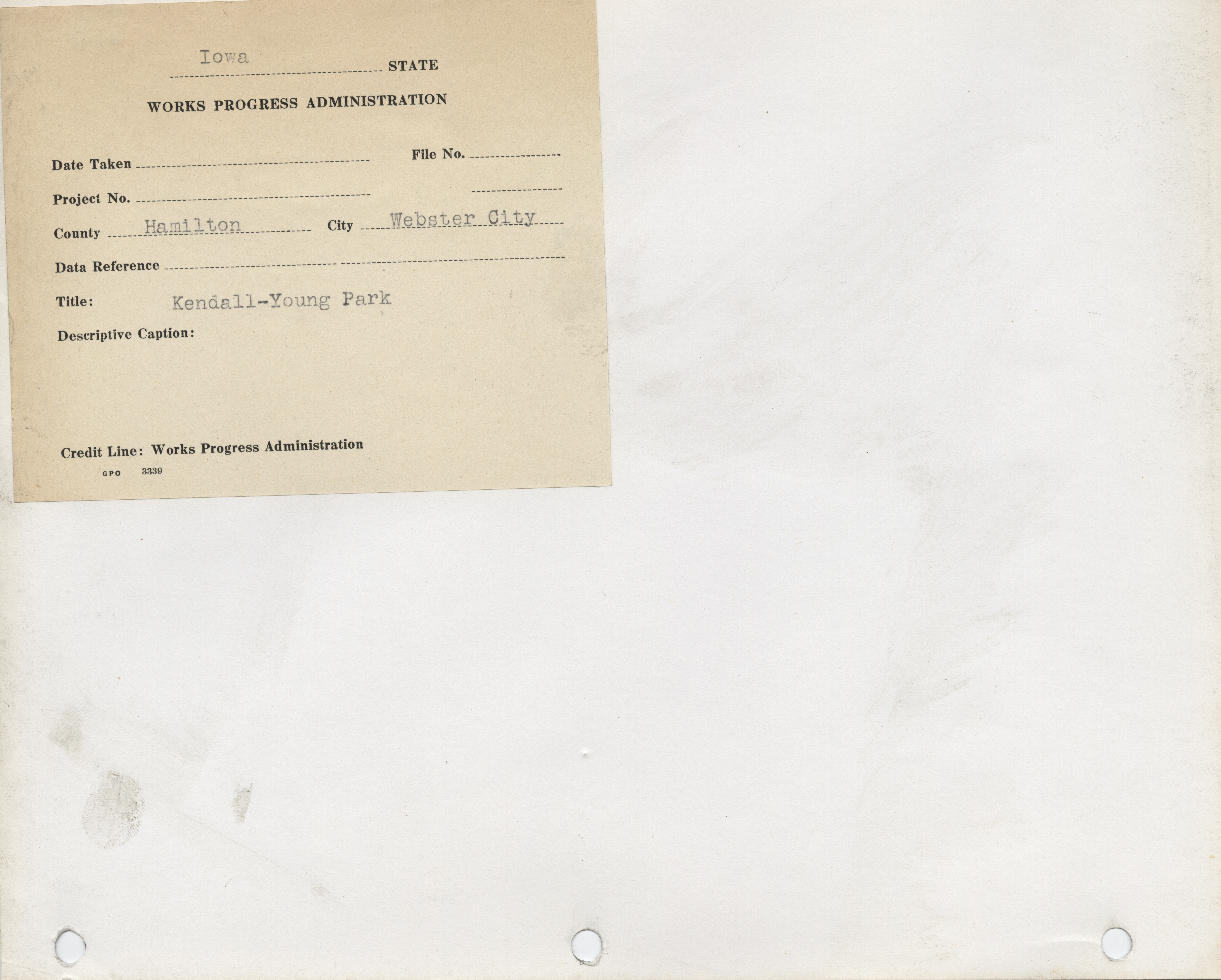 - Parks. Hamilton County. Webster City. Kendall-Young Park. Project 157. (7 b/w photographs), 1937-1939, undated