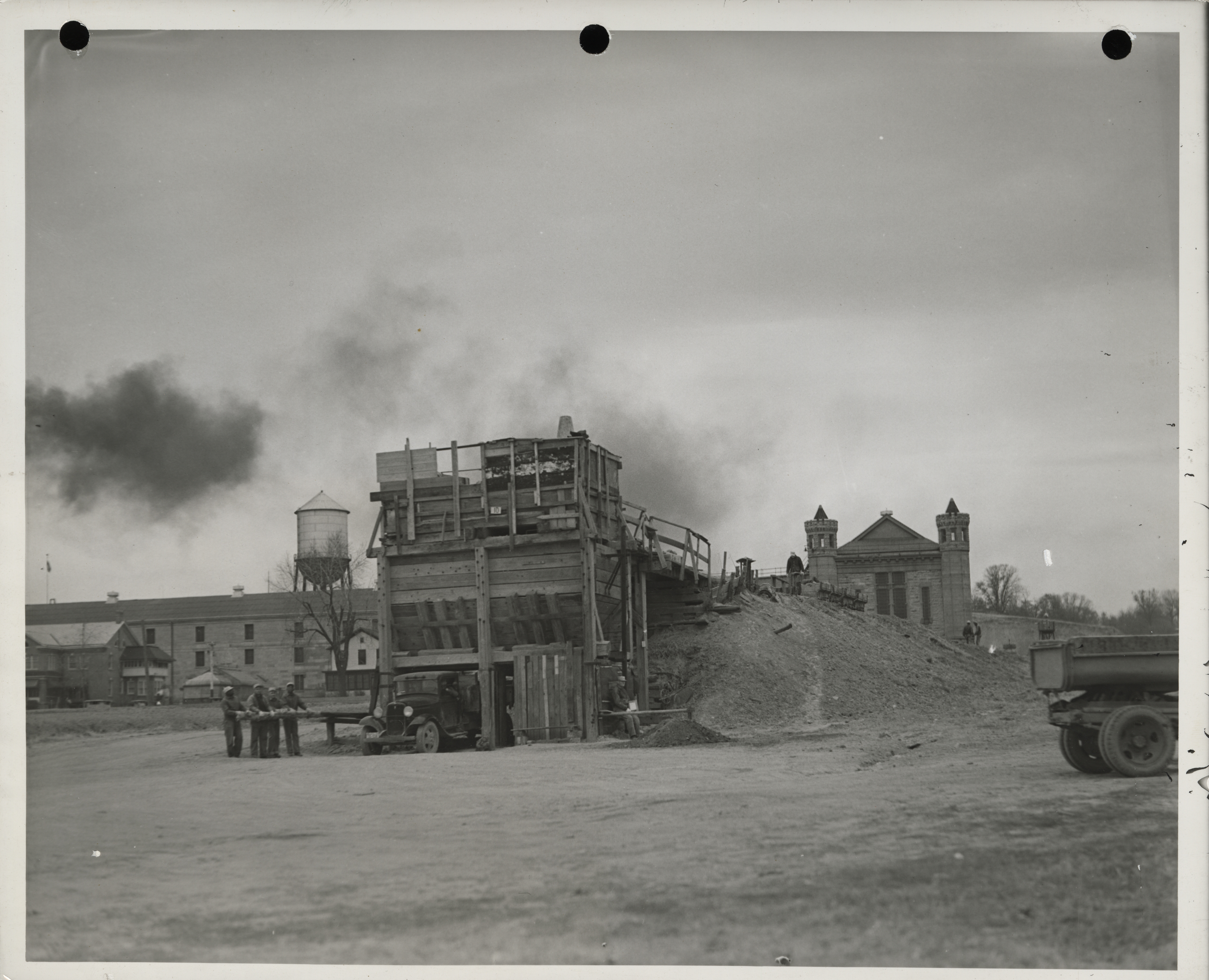 - "Photograph of equipment for riverfront improvement in Fort Madison", Work Projects Administration (Iowa) Photographs, Iowa State University Library Digital Collections