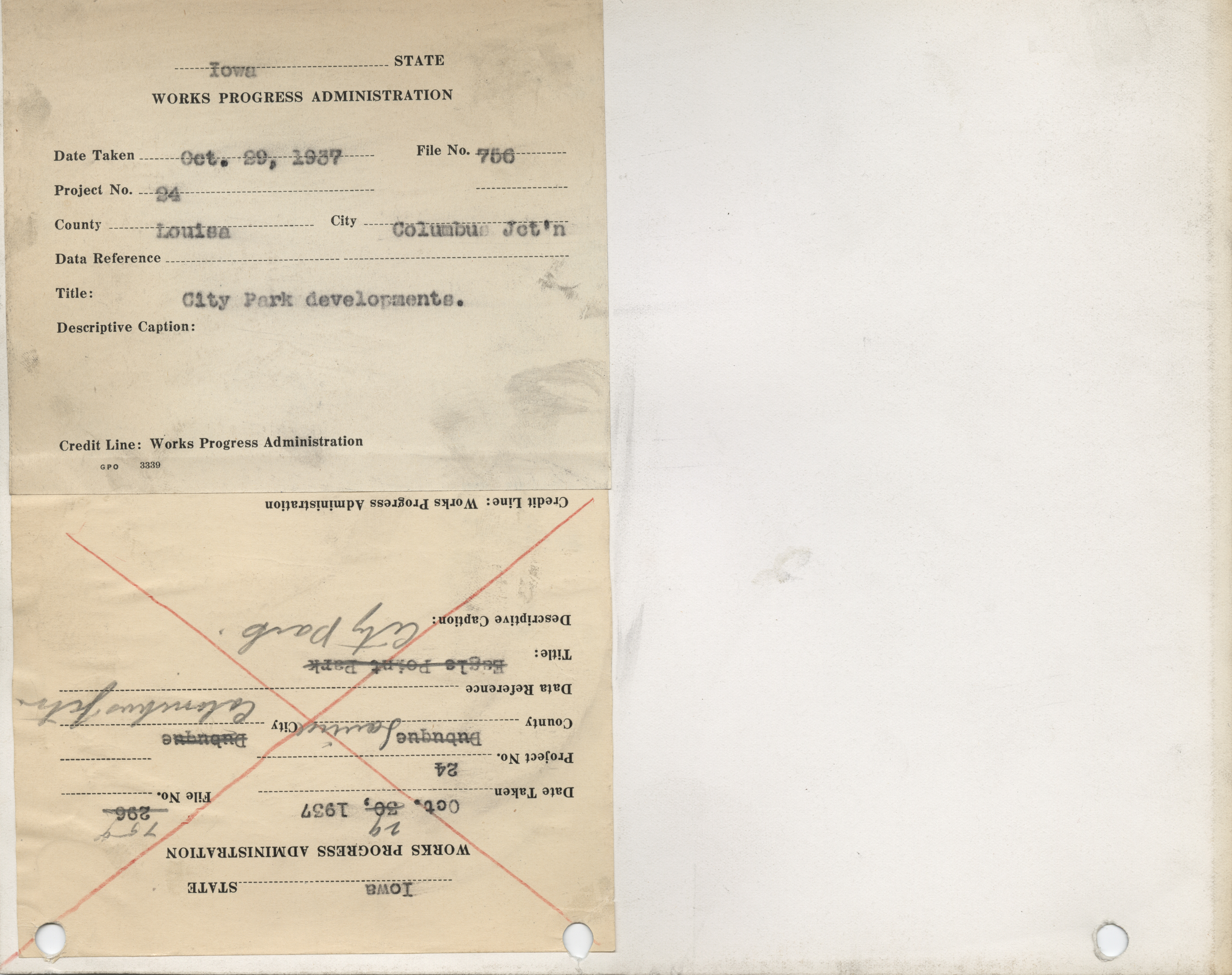 - Parks. Louisa County. Columbus Junction. City Park Structures. Project 24. (5 b/w photographs), 1937