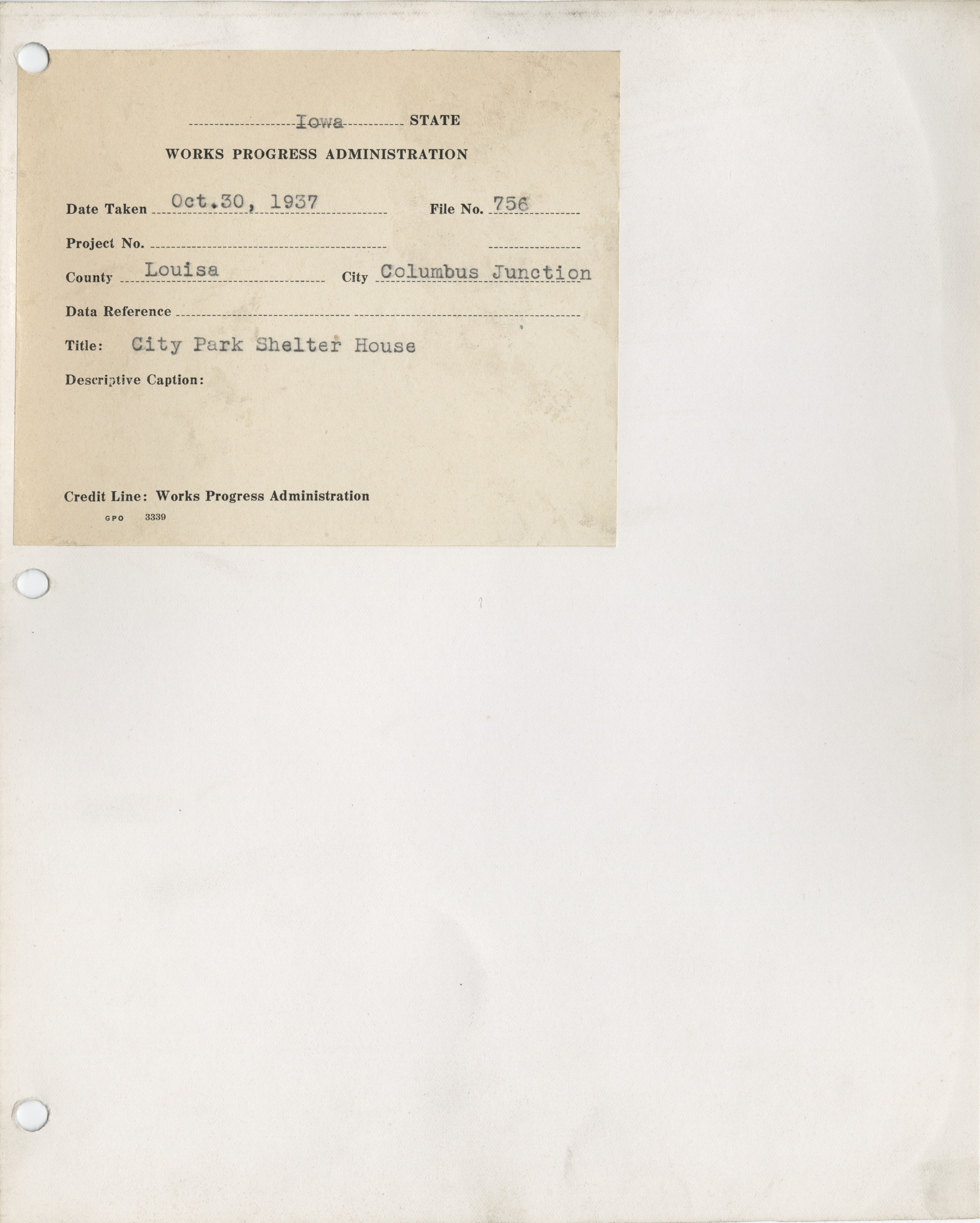 - "Photograph of a shelter house at a city park in Columbus Junction", Work Projects Administration (Iowa) Photographs, Iowa State University Library Digital Collections