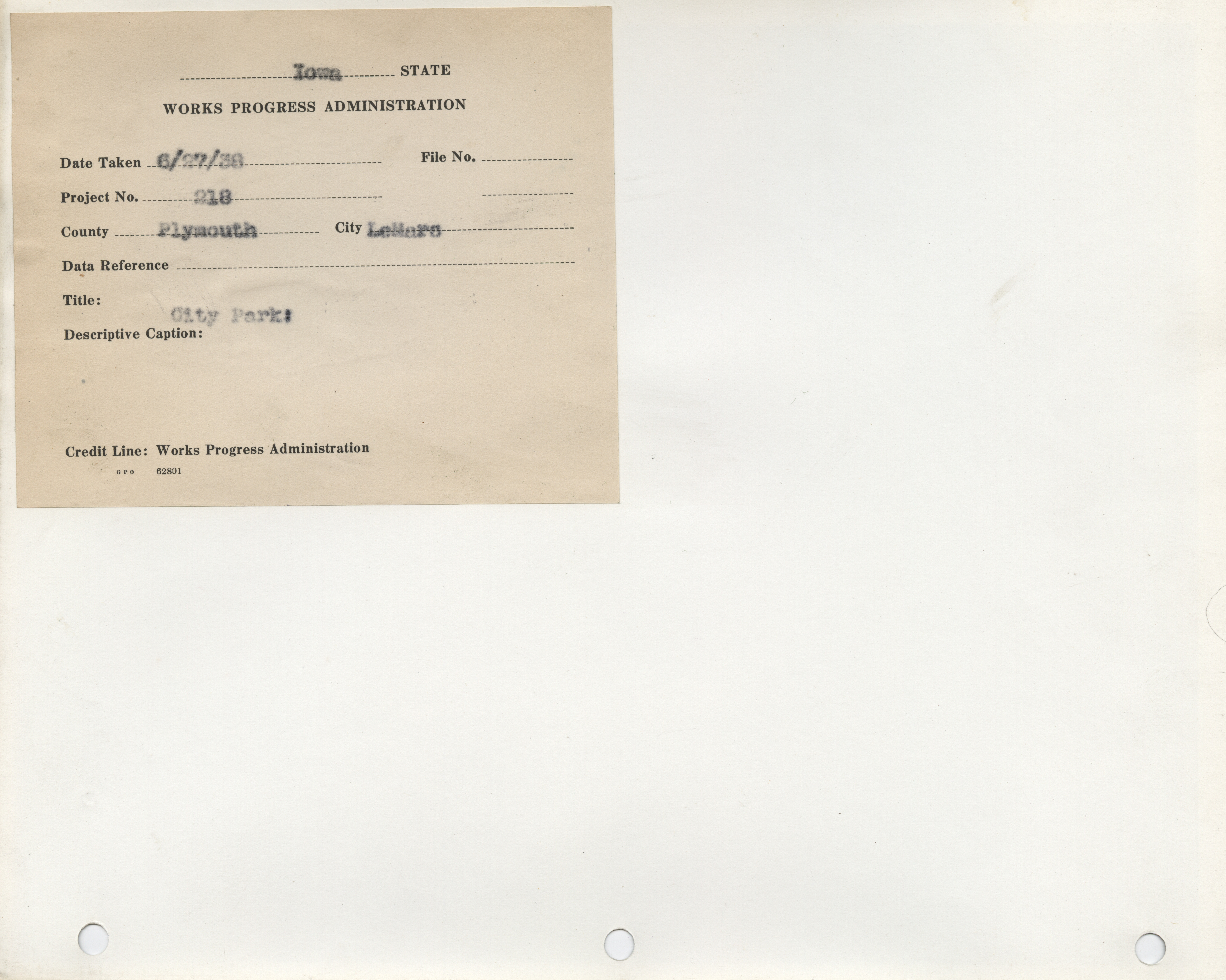 - "Photograph of buildings at a city park in Le Mars", Work Projects Administration (Iowa) Photographs, Iowa State University Library Digital Collections