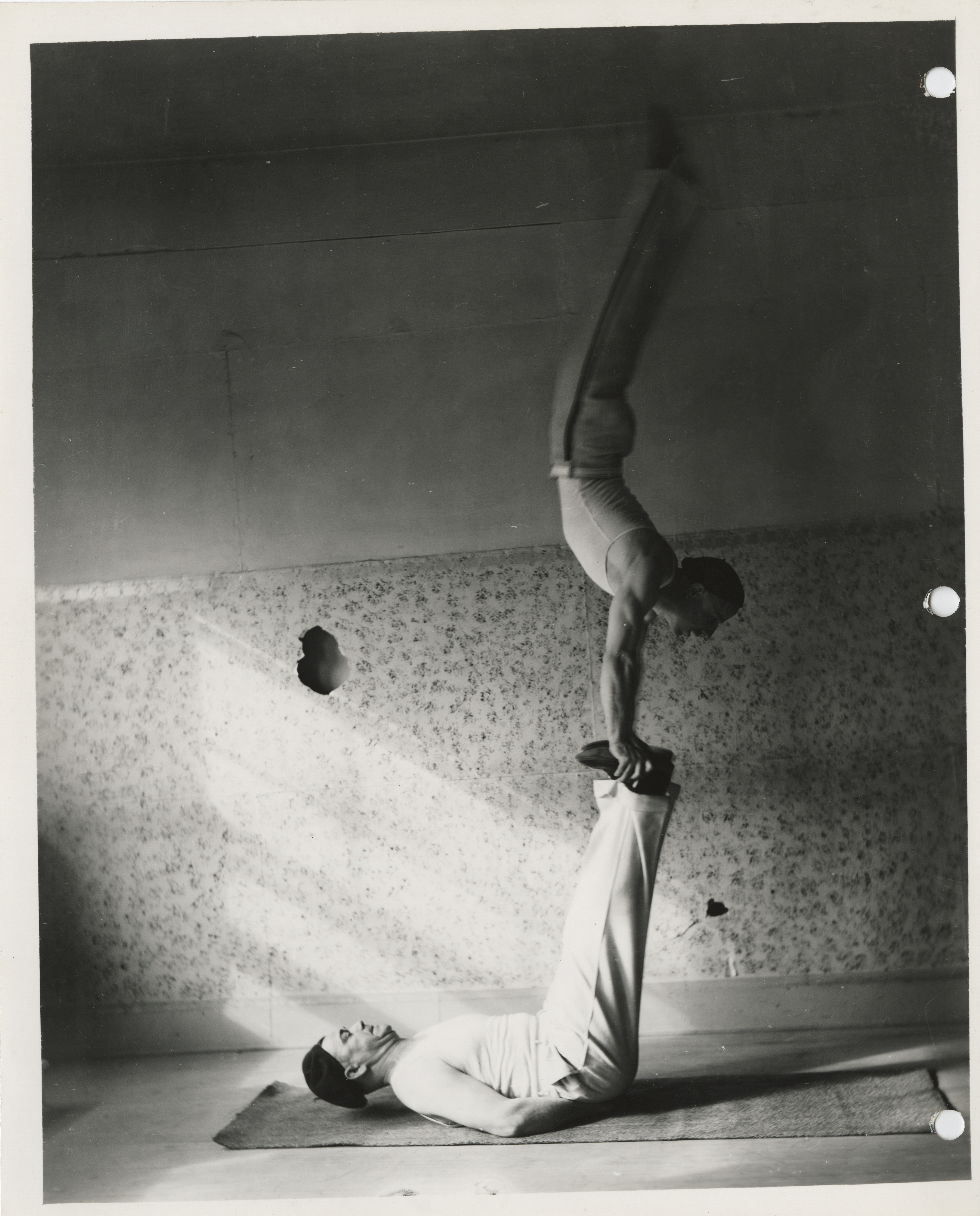 - Musicians--Actors. Des Moines. Waddell and Smith, Hand Balancing Act. (1 b/w photograph), 1936