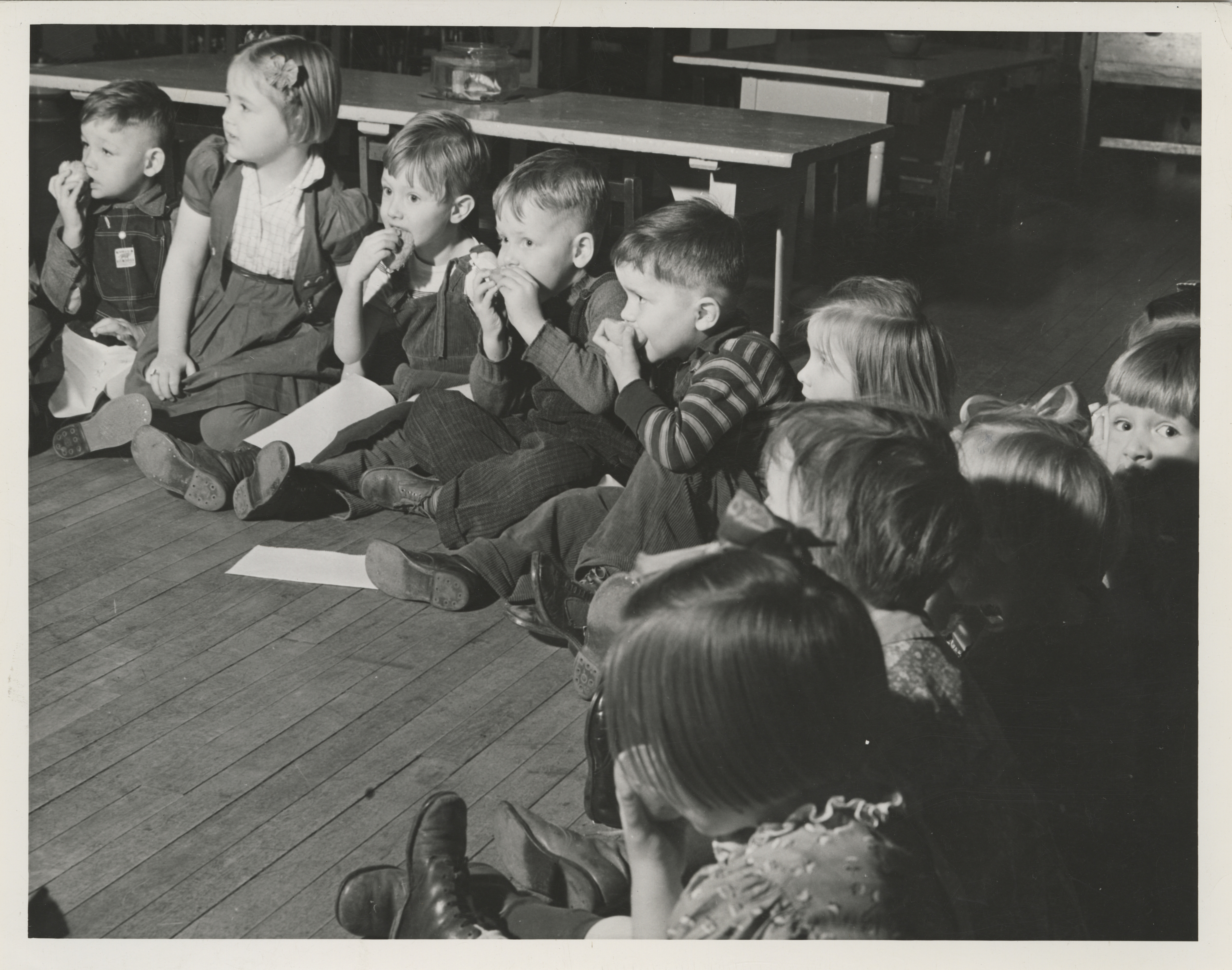 - "Photograph of snack time at McKinley School in Mason City", Work Projects Administration (Iowa) Photographs, Iowa State University Library Digital Collections