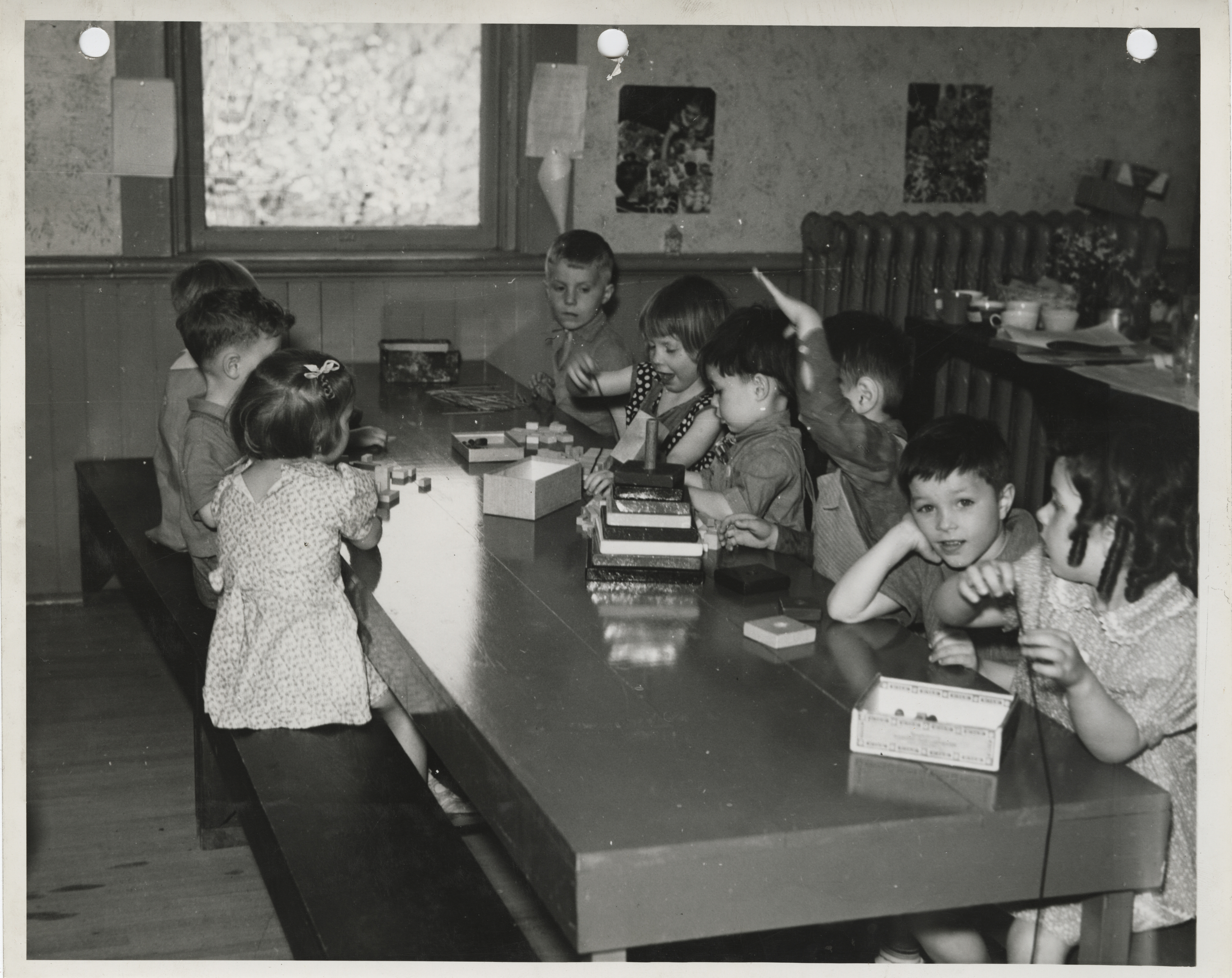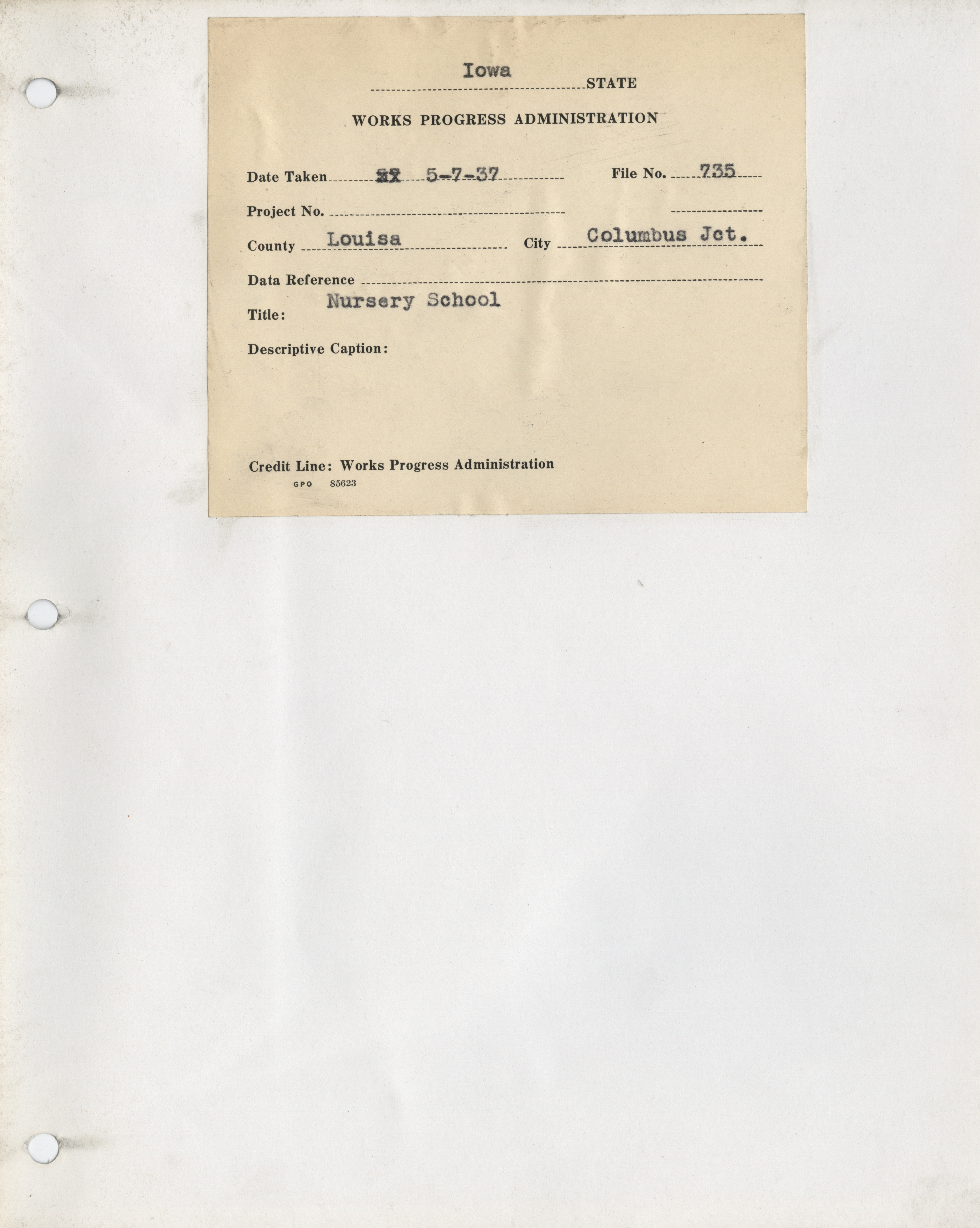 - "Photograph of a class at a nursery school in Columbus Junction", Work Projects Administration (Iowa) Photographs, Iowa State University Library Digital Collections