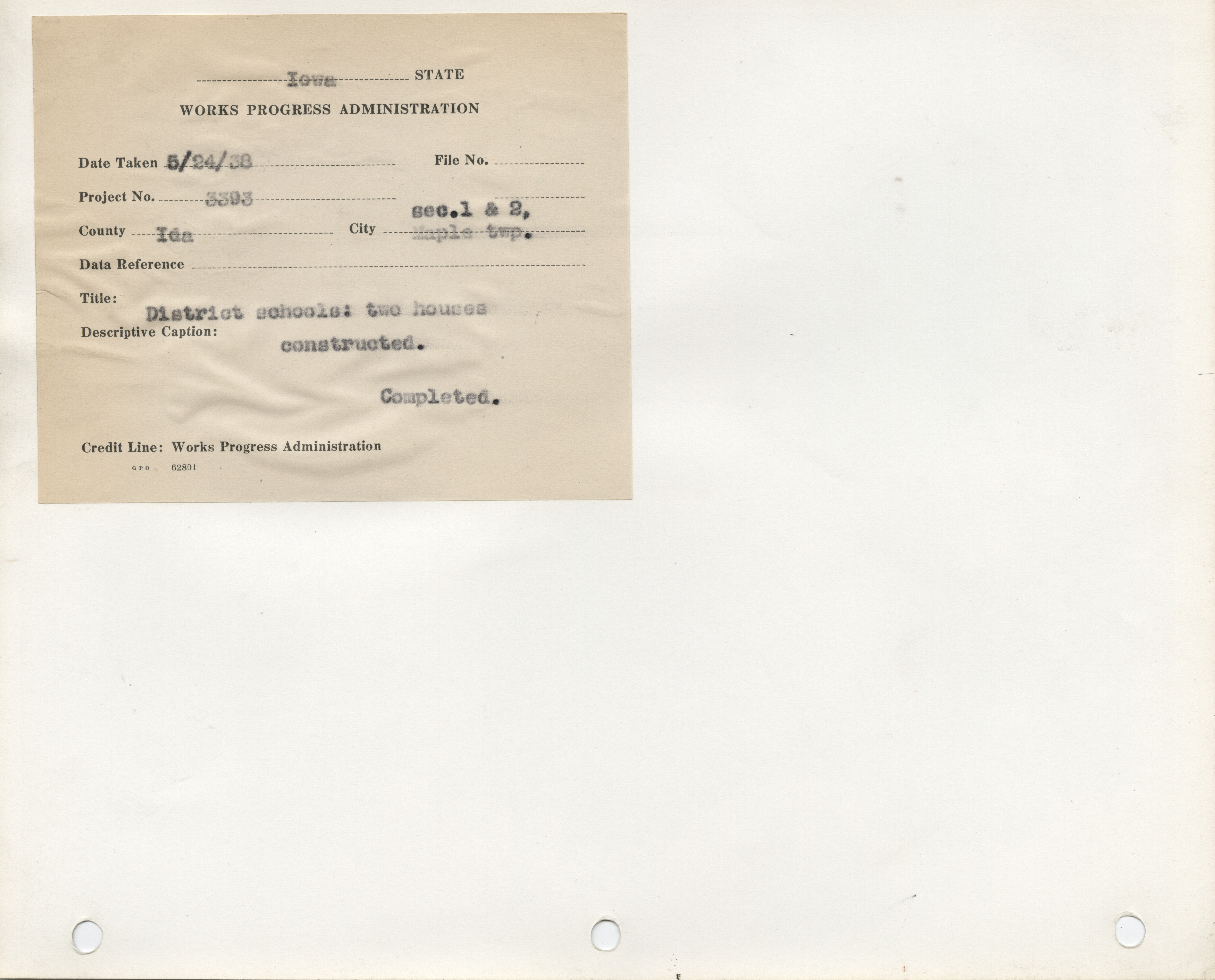 - Public Buildings. Ida County. District Schools. Project 3393. (2 b/w photographs), 1938