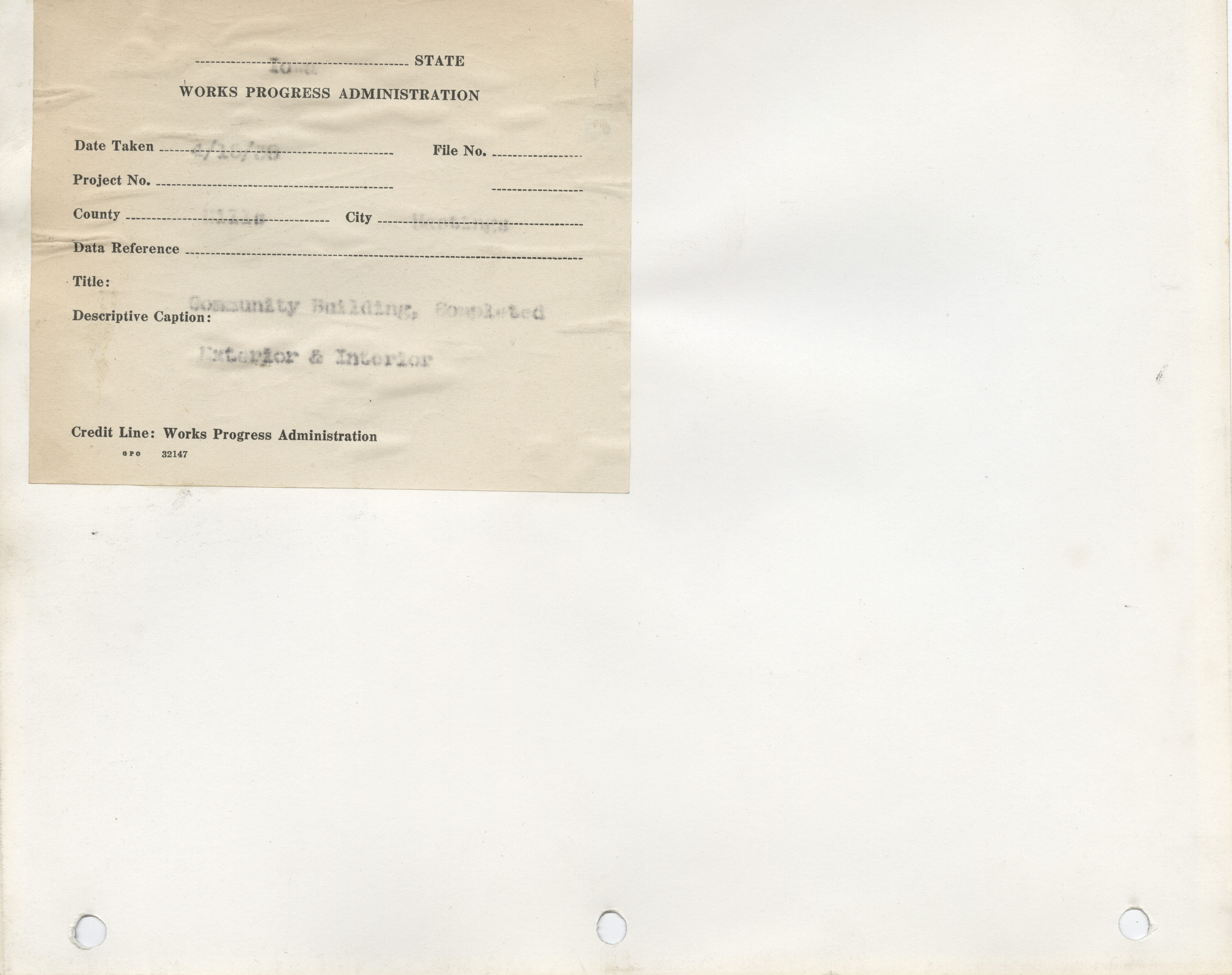 - Public Buildings. Mills County. Hastings. Community Building. (2 b/w photographs), 1938